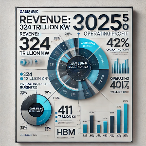 2025년 삼성전자의 매출은 324조원, 영업이익은 41조원 수준으로 예상되고 있습니다. 이는 전년 대비 개선된 수치지만, 회복 속도는 완만할 것으로 보입니다. 특히 반도체 부문 실적이 변수인데, 일부 증권사는 1분기 영업이익이 5조원 미만일 것으로 보며 보수적인 관점을 유지하고 있습니다.