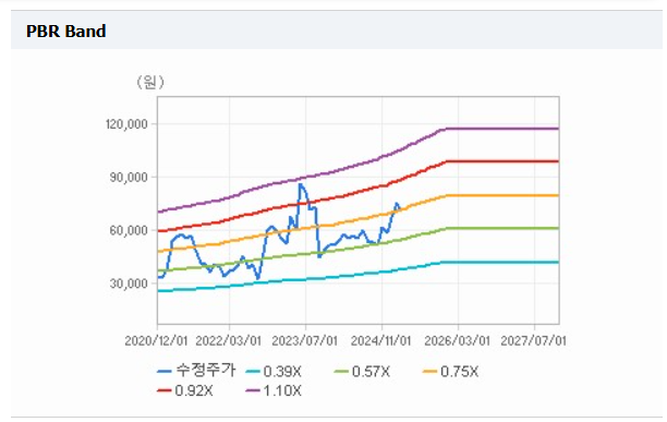 HD현대건설기계의 PER(주가수익비율)은 13.345로 업종 평균보다 낮고, PBR(주가순자산비율)도 0.748로 저평가된 상태입니다. 저평가는 매수 기회일 수 있지만, 이는 시장 전반의 신뢰 부족, 성장 기대감 저하, 또는 비용 증가에 대한 우려를 내포하고 있을 수 있습니다.