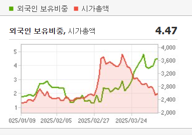 휴스틸의 주가는 2025년 3월 초 5,600원까지 상승하며 강한 모멘텀을 보여주었습니다. 이는 20일 이동평균선과 60일 이동평균선을 모두 상회하는 흐름이었으며, 기술적 분석 상 긍정적인 신호였습니다. 다만 4월 4일 기준 주가는 4,870원으로 다소 조정받은 모습입니다.