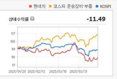 2025년 3월 중순 기준 현대차의 주가는 약 198,500원이었지만, 4월 중순에는 177,500원까지 하락하며 52주 신저가를 기록했습니다. 이는 단기적으로 투자 심리가 크게 위축되었음을 의미합니다. 특히 글로벌 자동차 수요 둔화 우려와 함께 외국인 투자자의 순매도세가 두드러졌습니다.