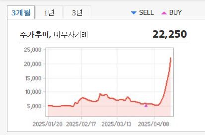 포바이포의 주가는 2025년 4월 18일 기준 전일 대비 26.39% 급등한 21,650원으로 마감했습니다. 특히 4월 10일부터 18일까지 7거래일 연속 상승세를 기록했으며, 4월 14일부터 17일까지는 연속으로 상한가를 달성했습니다. 불과 4월 초 5천 원대였던 주가가 2주 만에 4배 가까이 상승하며, 시장의 주목을 한 몸에 받았습니다.