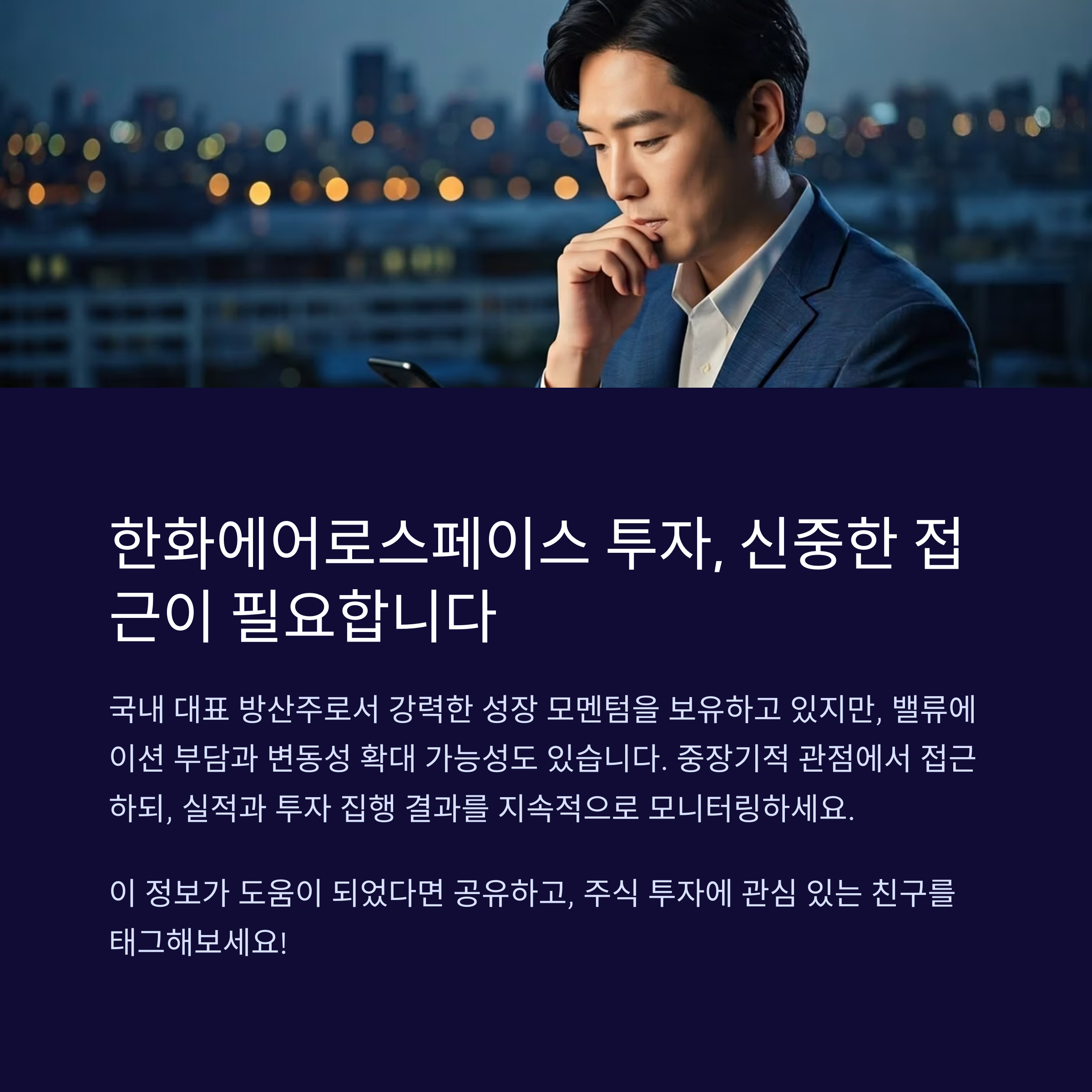 유상증자라는 단기적 악재를 겪고 있음에도, 방산 수요 확대, AI·우주항공 진출, 글로벌 JV 설립 등 미래 가치가 뒷받침되고 있어 중장기적인 관점에서는 여전히 유망한 종목입니다.