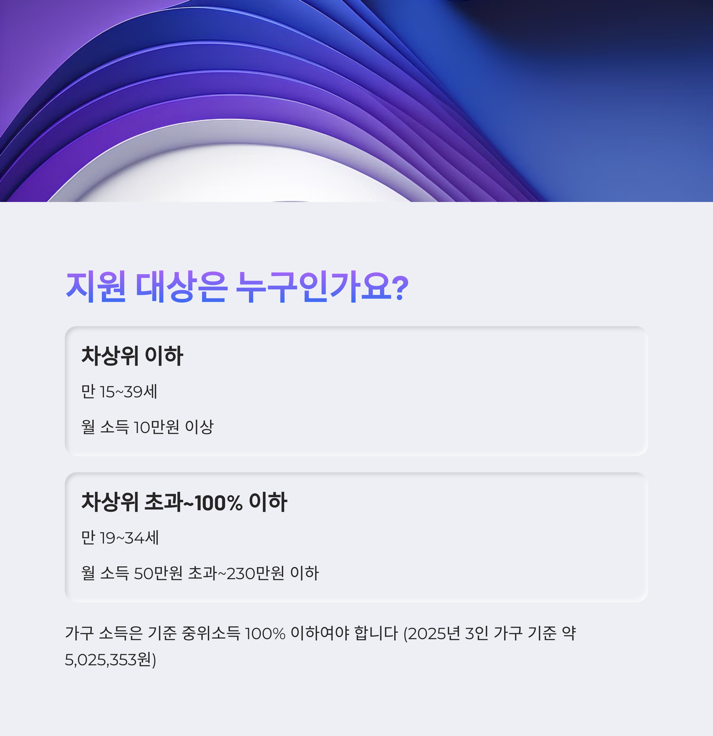 A. 일정 소득기준을 충족하는 만 19세~34세 이하 청년이 신청할 수 있습니다. 근로·사업소득이 반드시 있어야 하며, 중위소득 100% 이하의 조건이 있습니다.