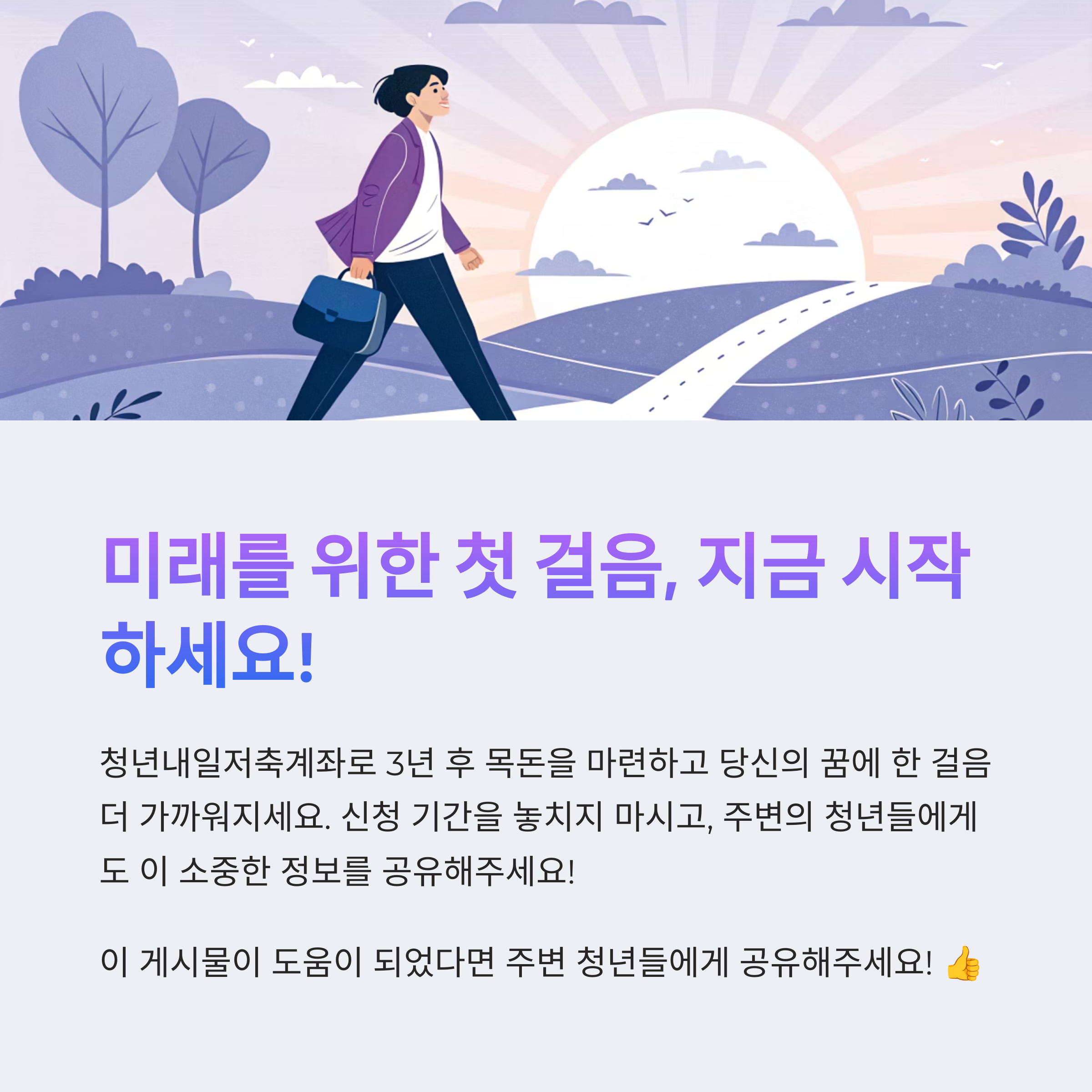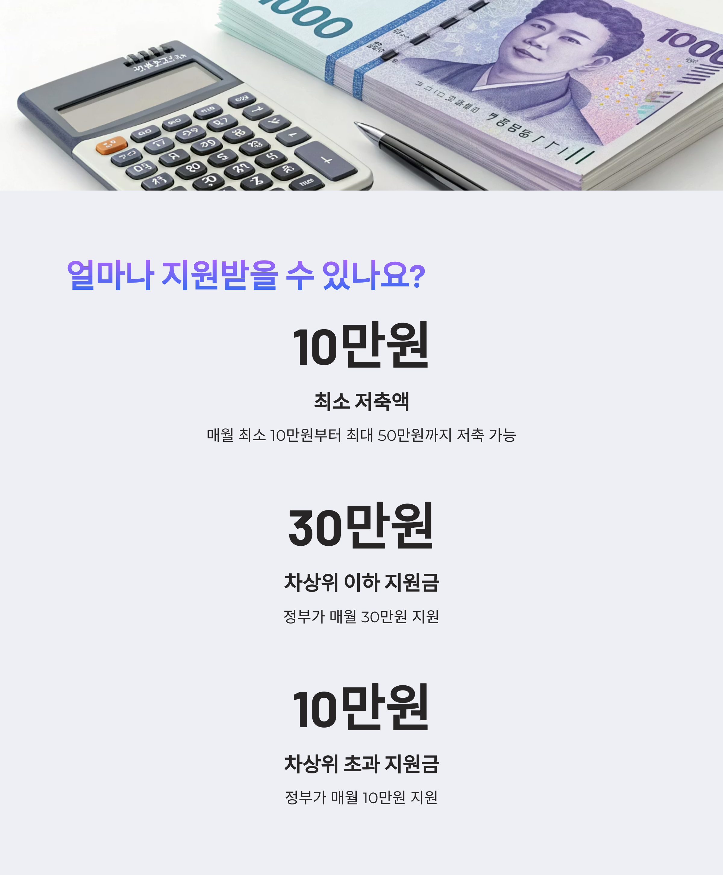 정부가 함께 적립해주는 만큼, 지금 시작하는 것이 가장 빠른 자산 형성의 길이죠.