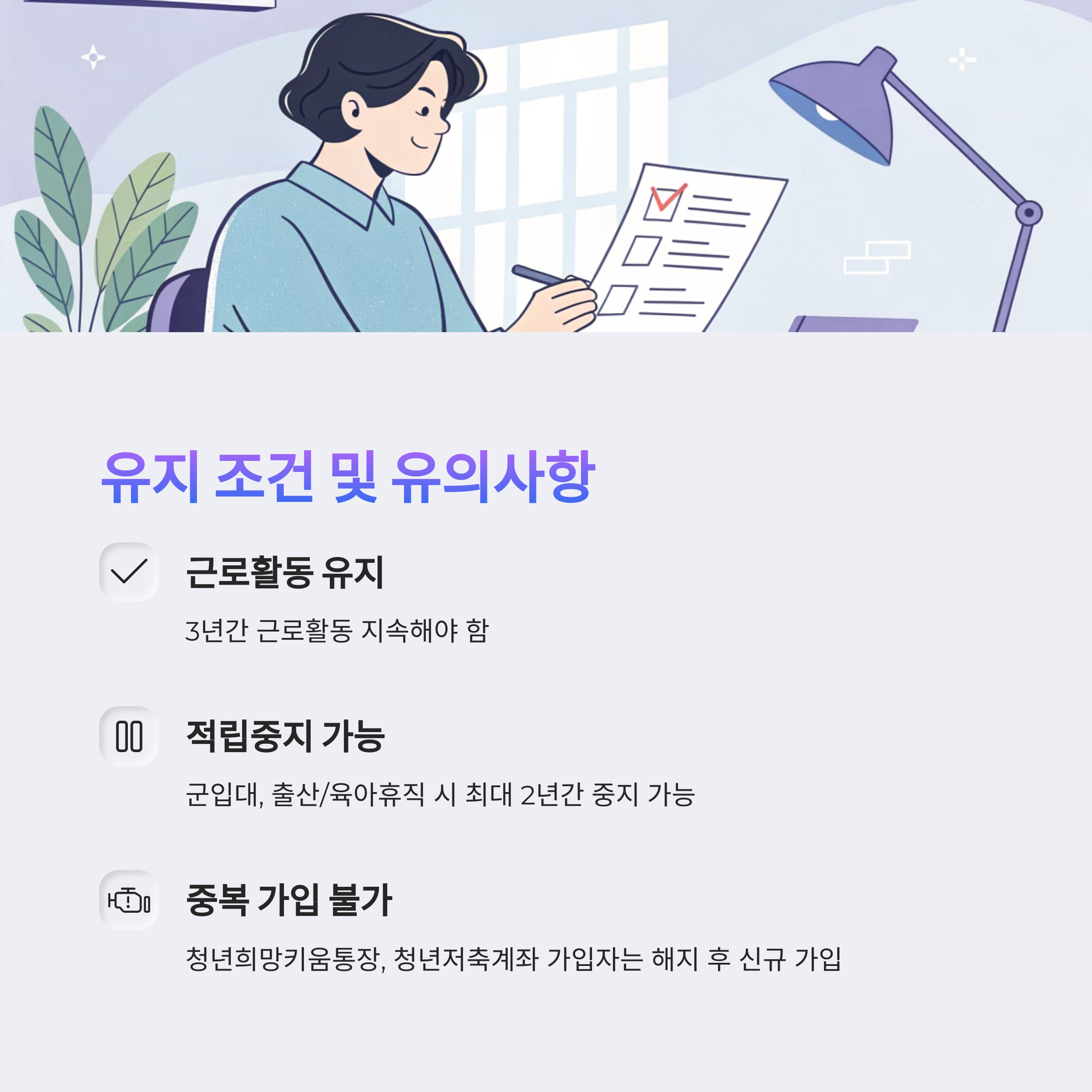 또한 3년간 지속적으로 저축해야 최대 금액을 받을 수 있으므로, 중도 해지나 불입 누락에 주의가 필요합니다.