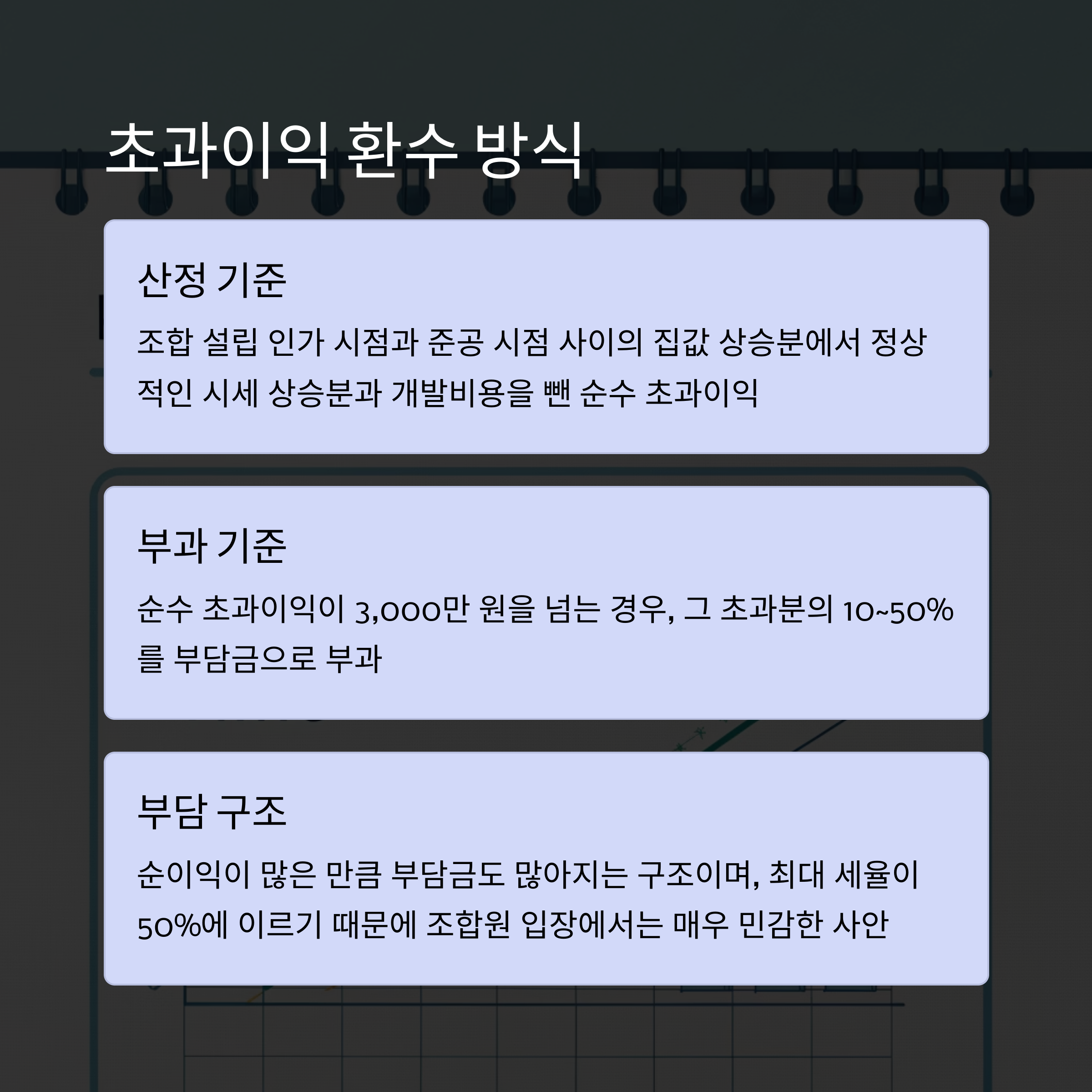 즉, 순이익이 많은 만큼 부담금도 많아지는 구조이며, 최대 세율이 50%에 이르기 때문에 조합원 입장에서는 매우 민감한 사안입니다.