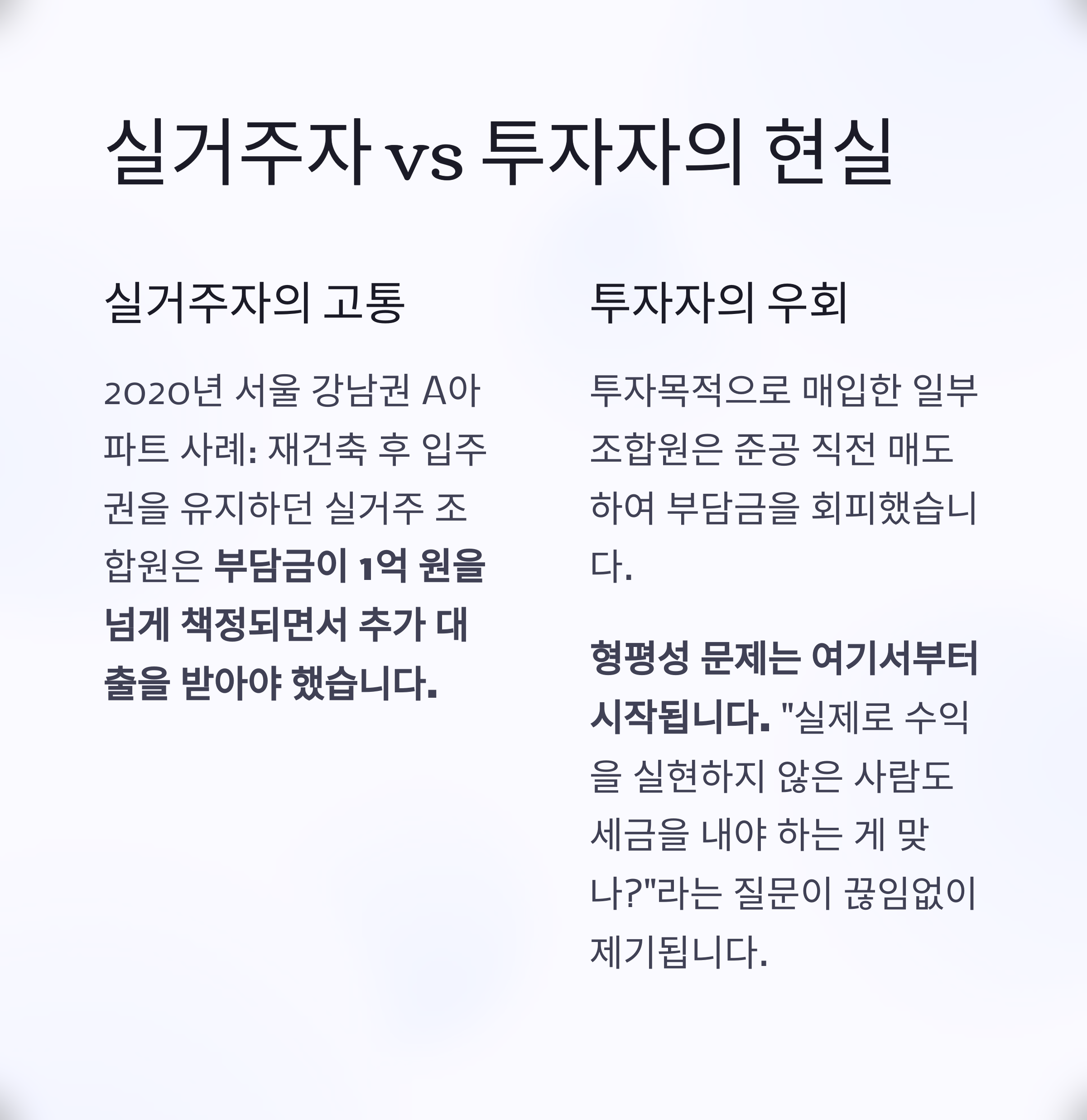 재건축에만 적용되고, 재개발에는 적용되지 않는 현 제도 구조도 형평성 문제의 중심에 있습니다.