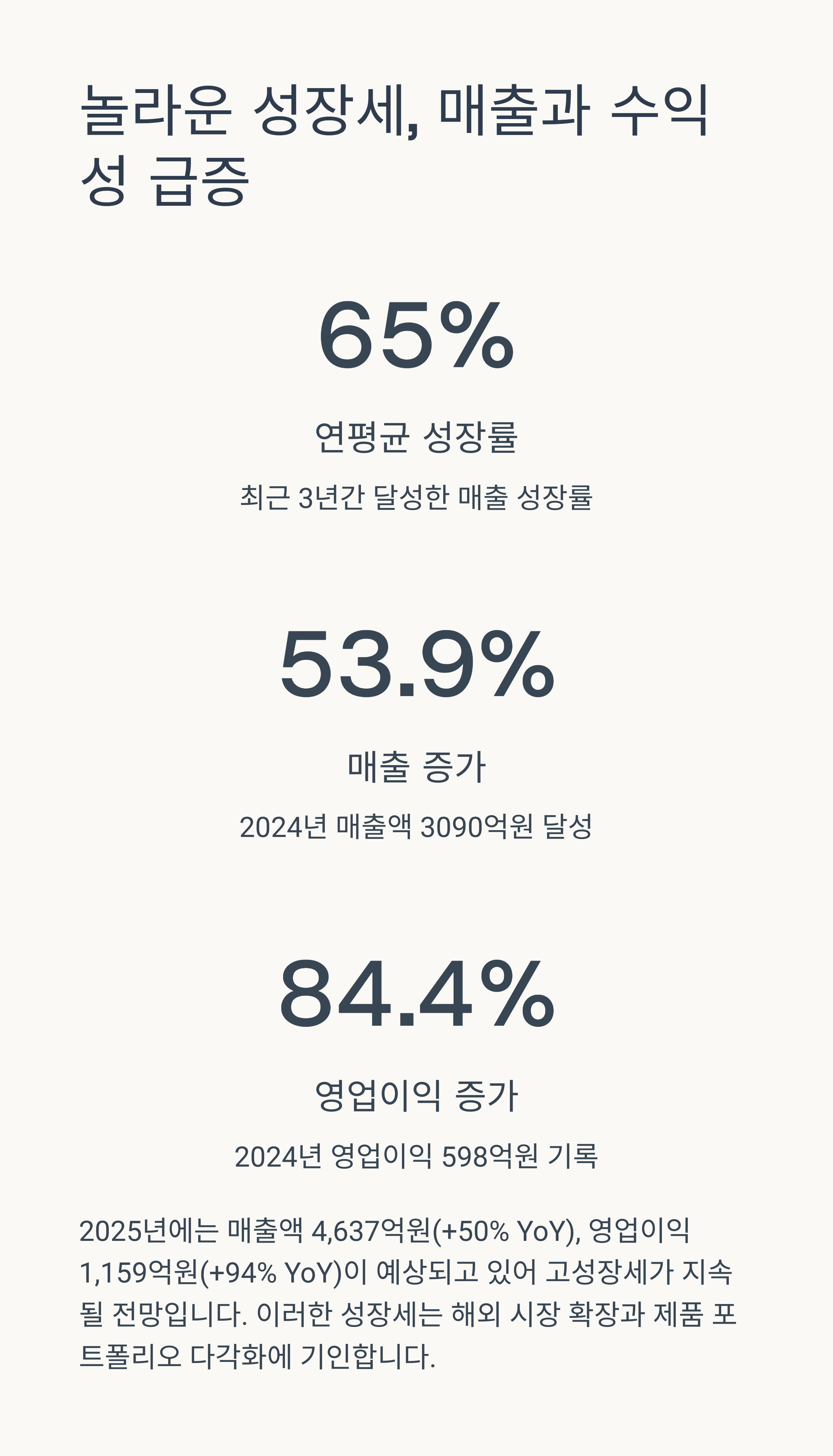 2024년에는 매출 3090억 원, 영업이익 598억 원을 기록하며