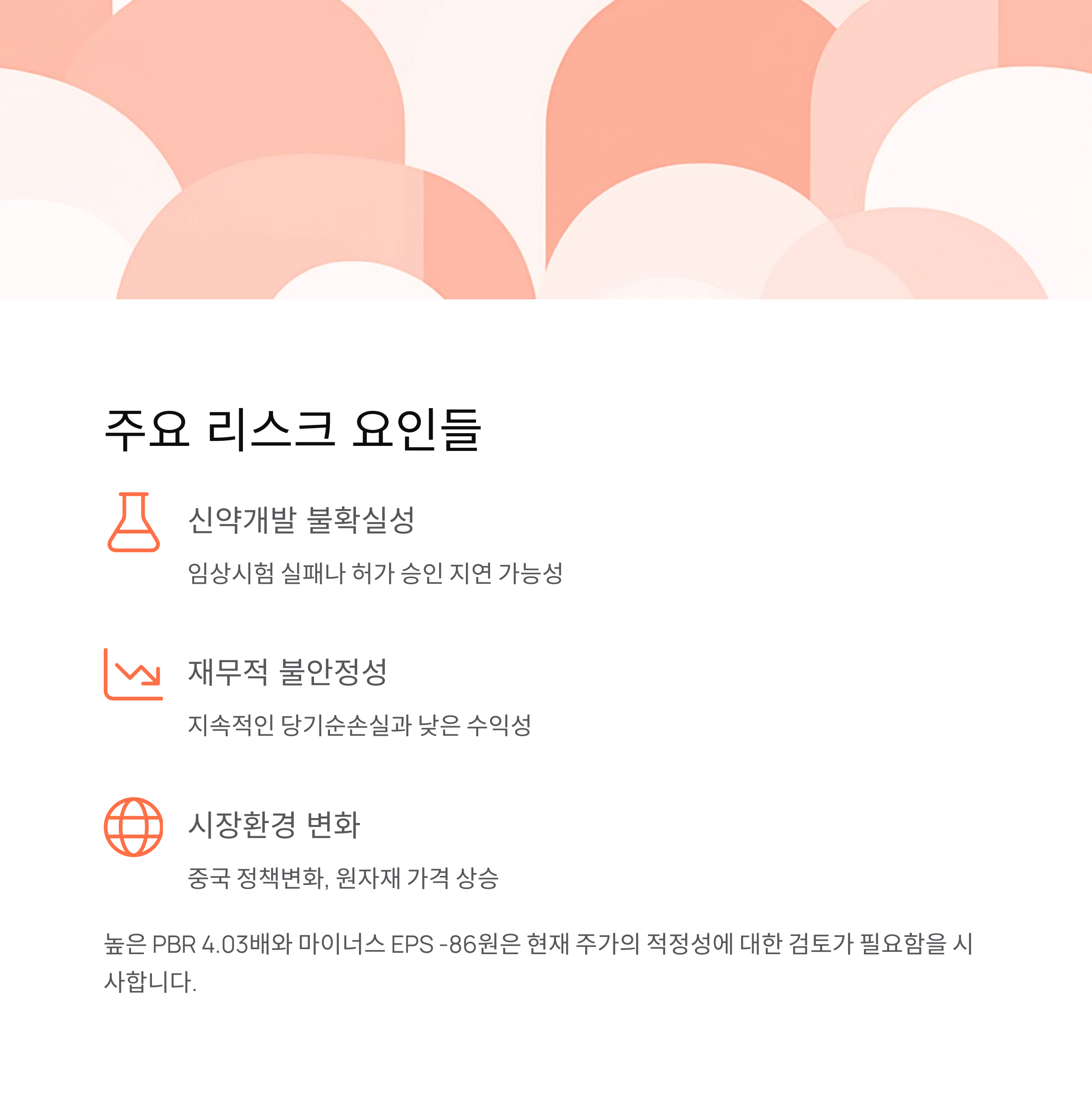 "중국 내 정책 변화나 경쟁 신약 출시 등 리스크가 크다"는