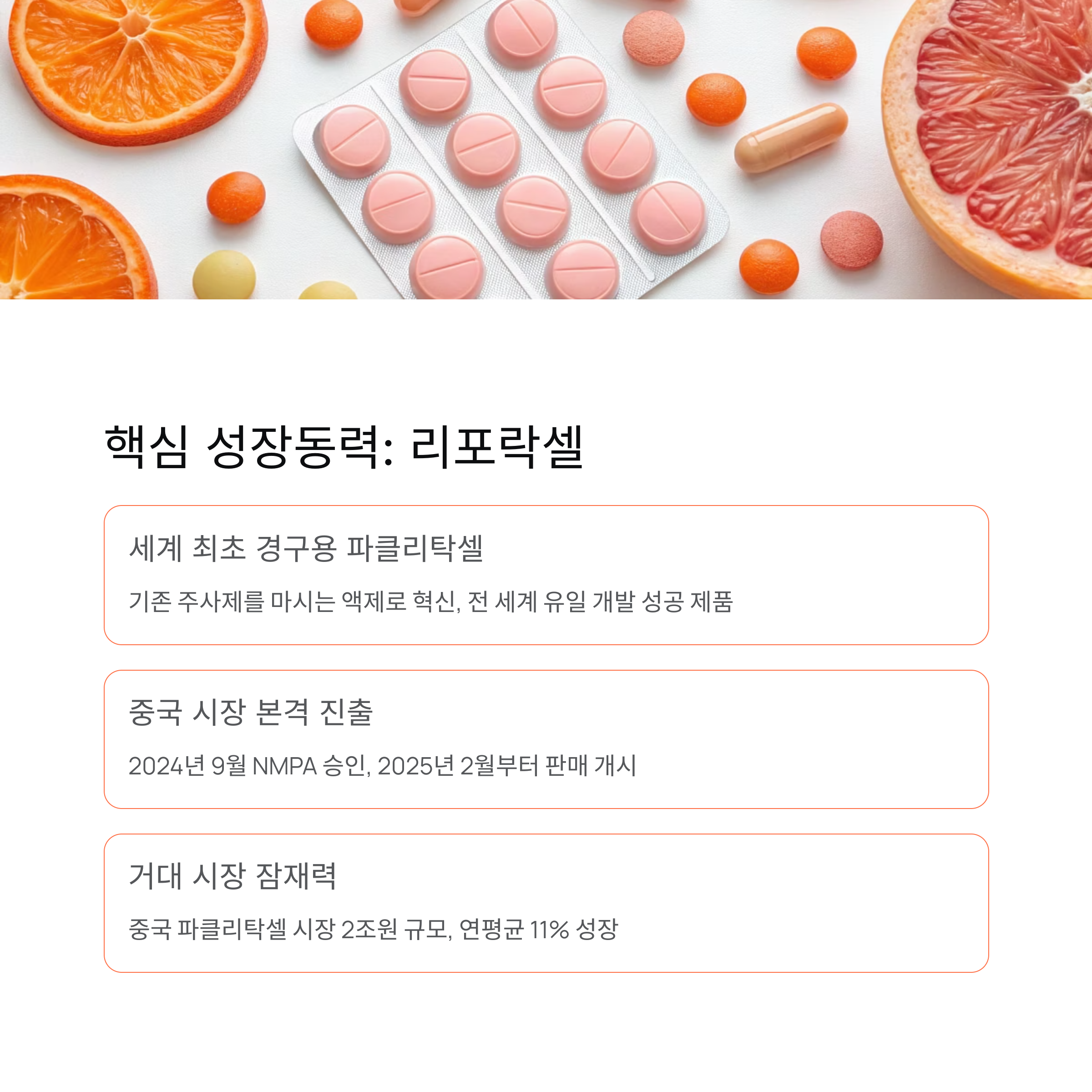 대화제약은 세계 최초 경구용 파클리탁셀 제제인 리포락셀의 중국 진출 성과를 중심으로