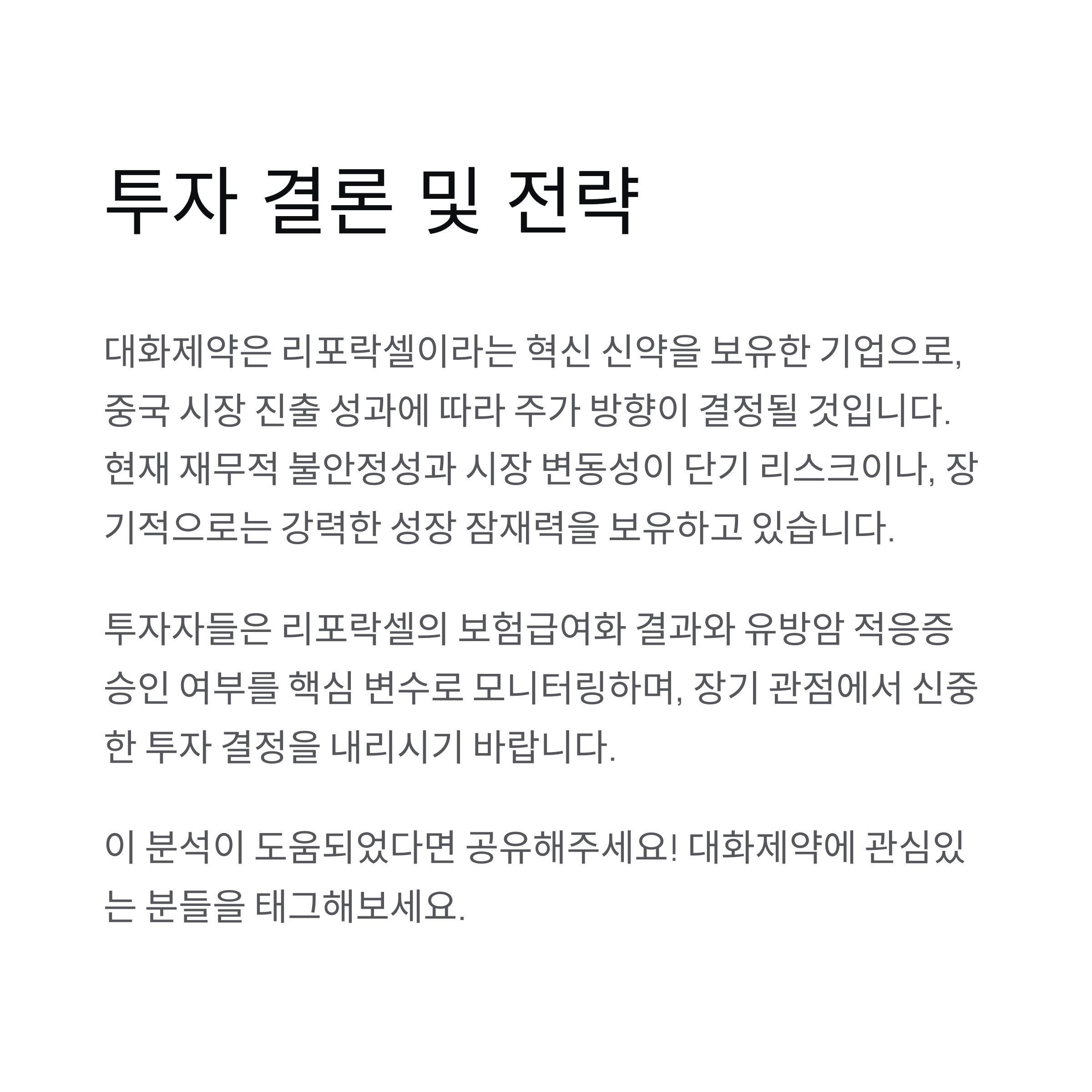 대화제약은 리포락셀이라는 글로벌 경쟁력을 갖춘 신약을 보유하고 있으며,