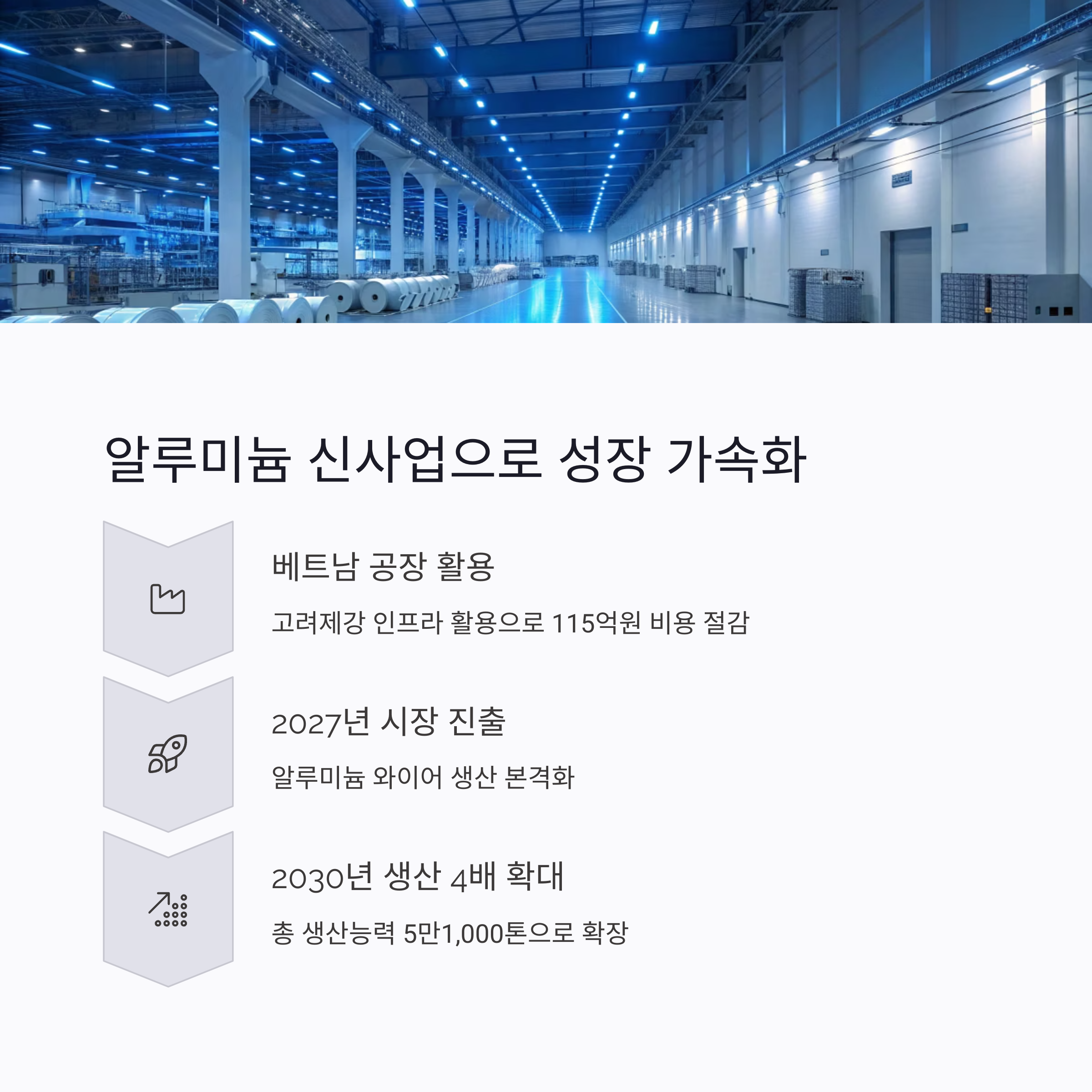 키스트론은 고려제강 베트남 공장을 활용해 2027년부터 알루미늄 와이어 시장에 진출할 계획입니다.