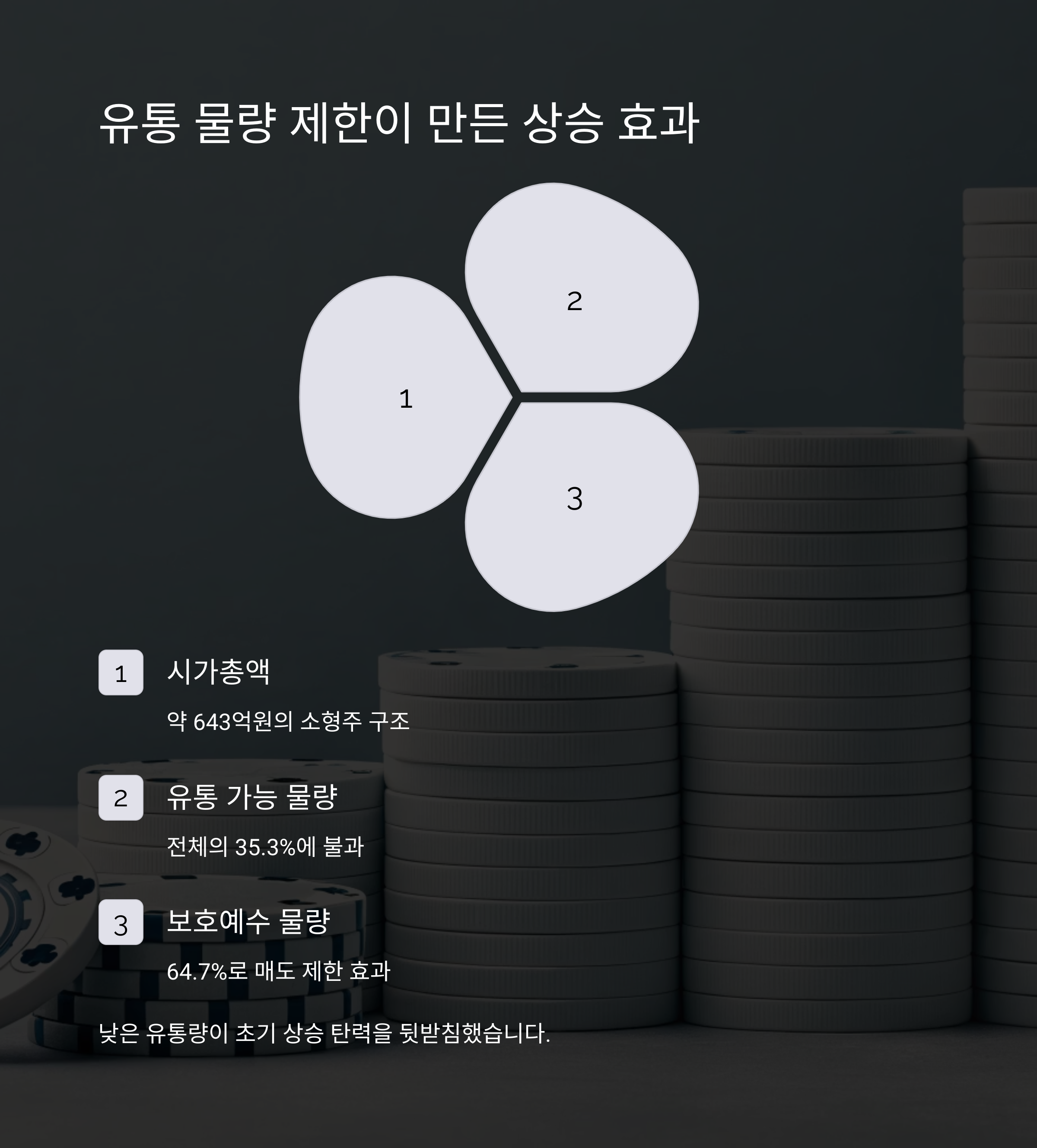 보호예수 물량이 64.7%에 달하는 구조는 단기적인 매도 물량 제한 효과를 일으키며