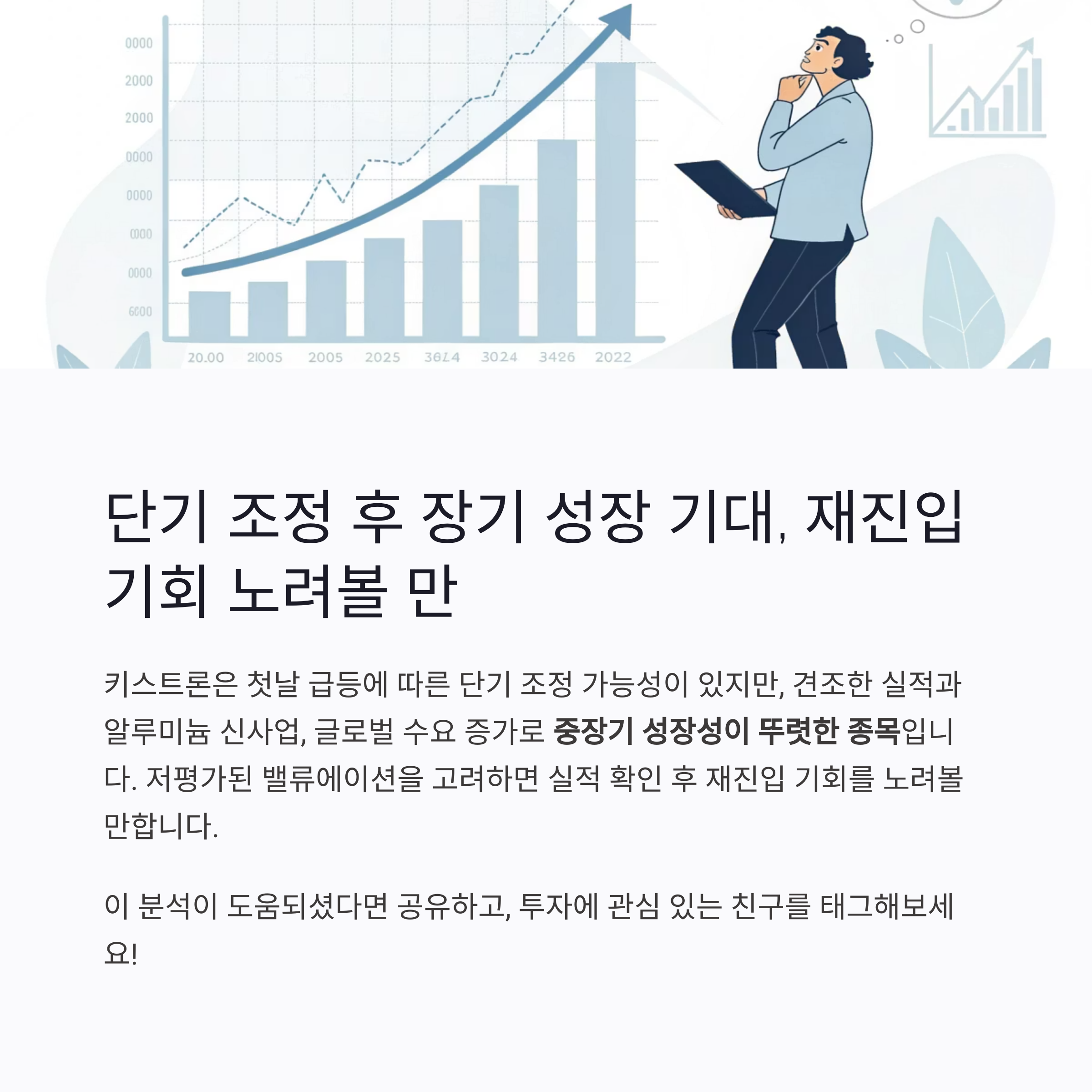 키스트론은 첫날 급등에 따른 단기 조정 가능성이 존재하지만,