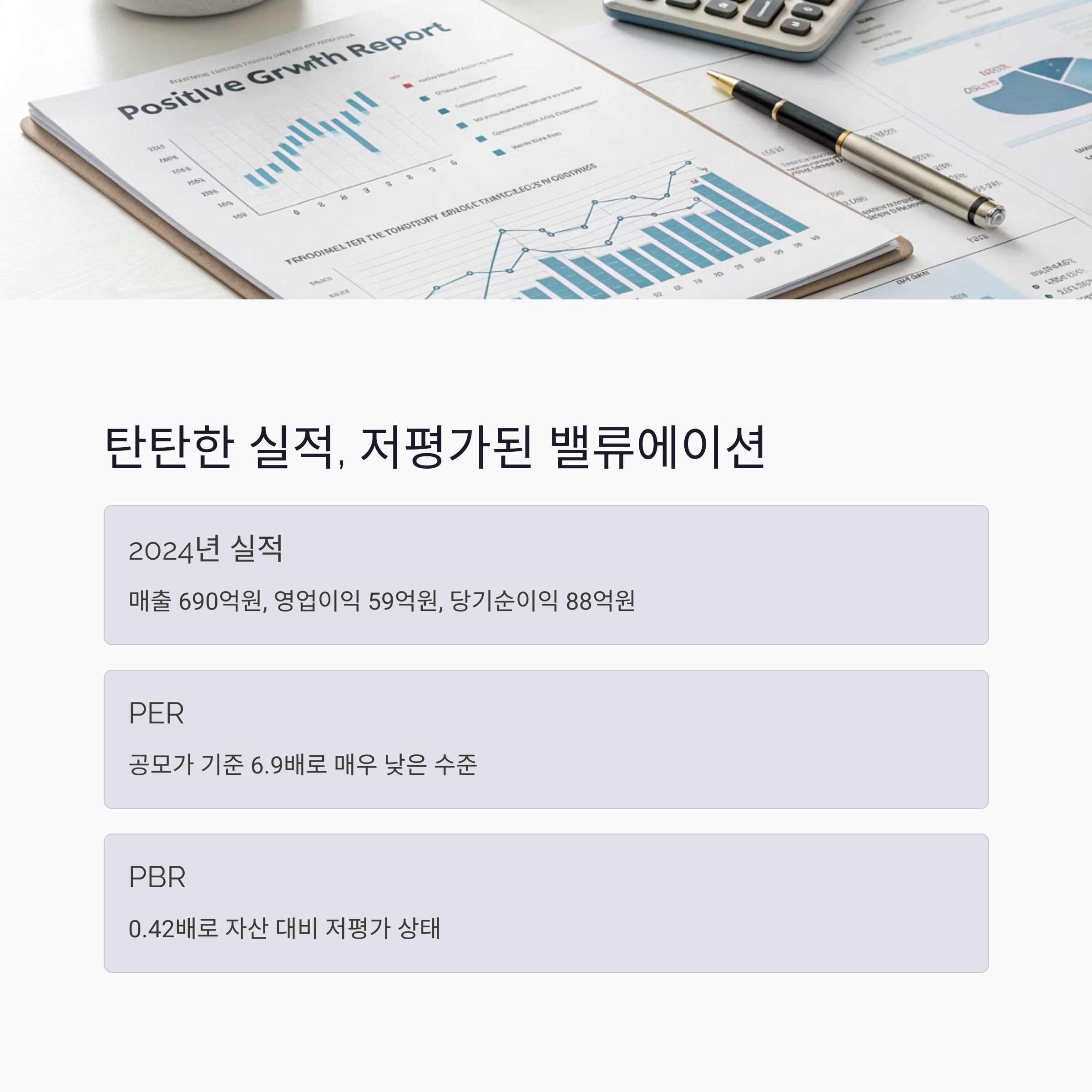 수익성 면에서도 안정된 흐름을 보이고 있습니다. 특히 공모가 기준 PER 6.9배,