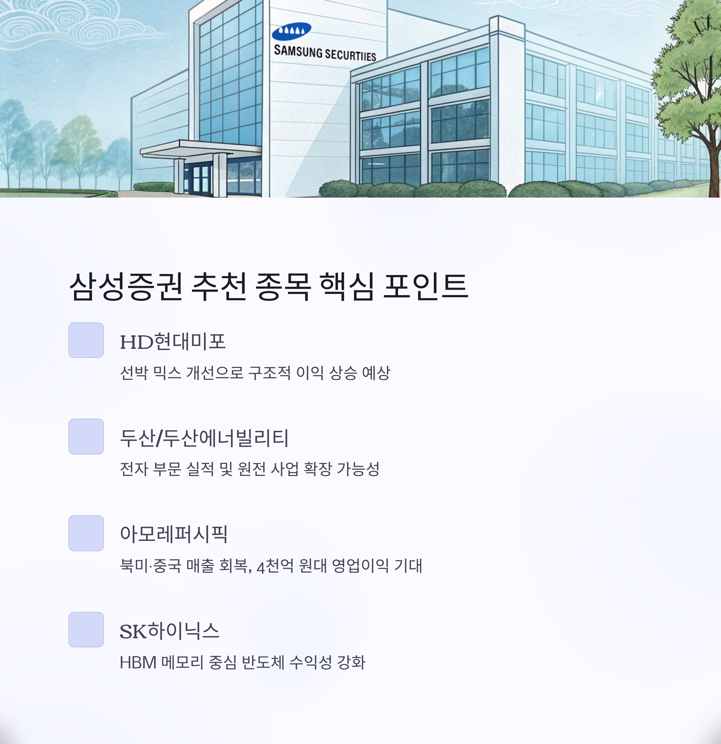 삼성증권은 HD현대미포, 두산, 두산에너빌리티, 아모레퍼시픽,