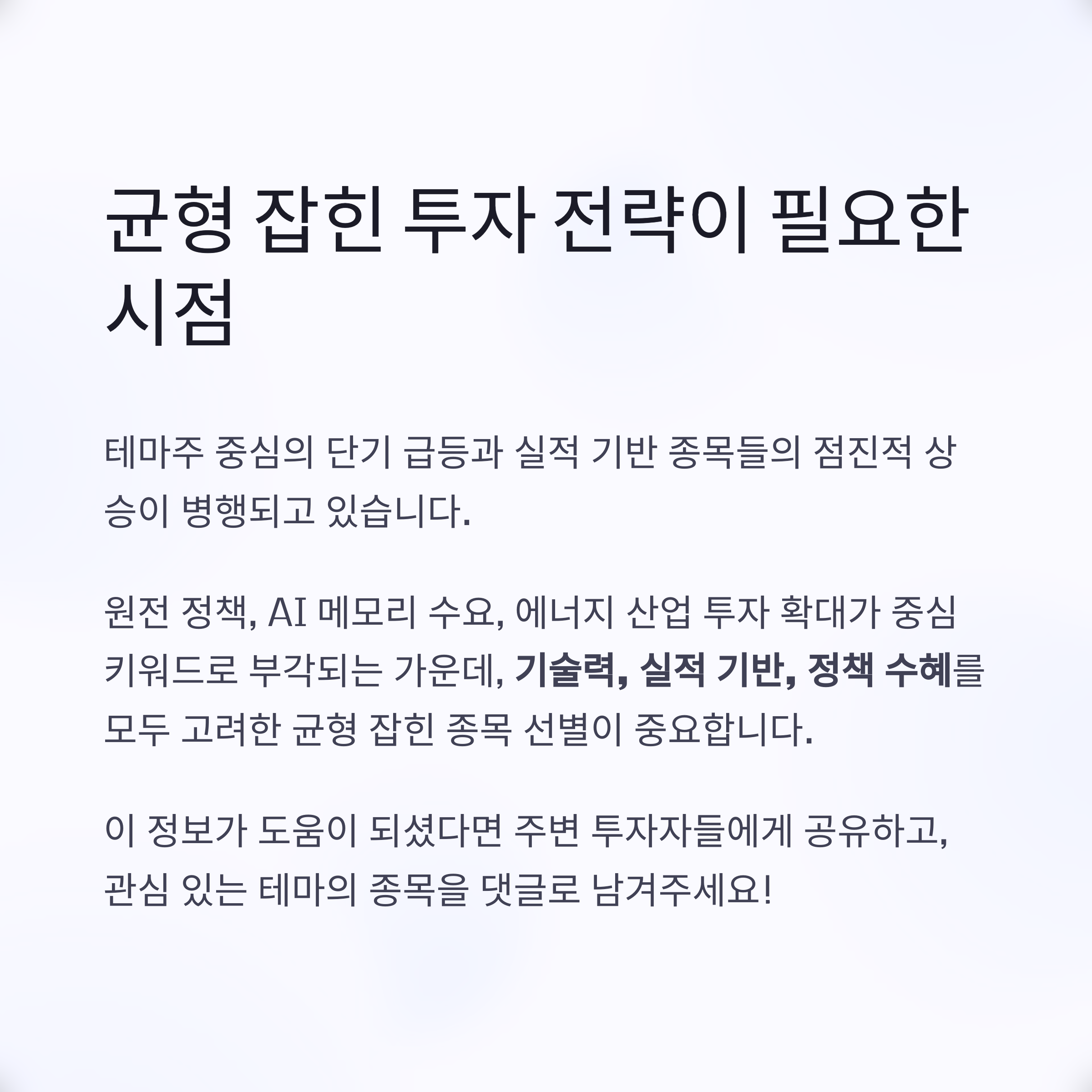원전 정책, AI 메모리 수요, 에너지 산업 투자 확대 등이