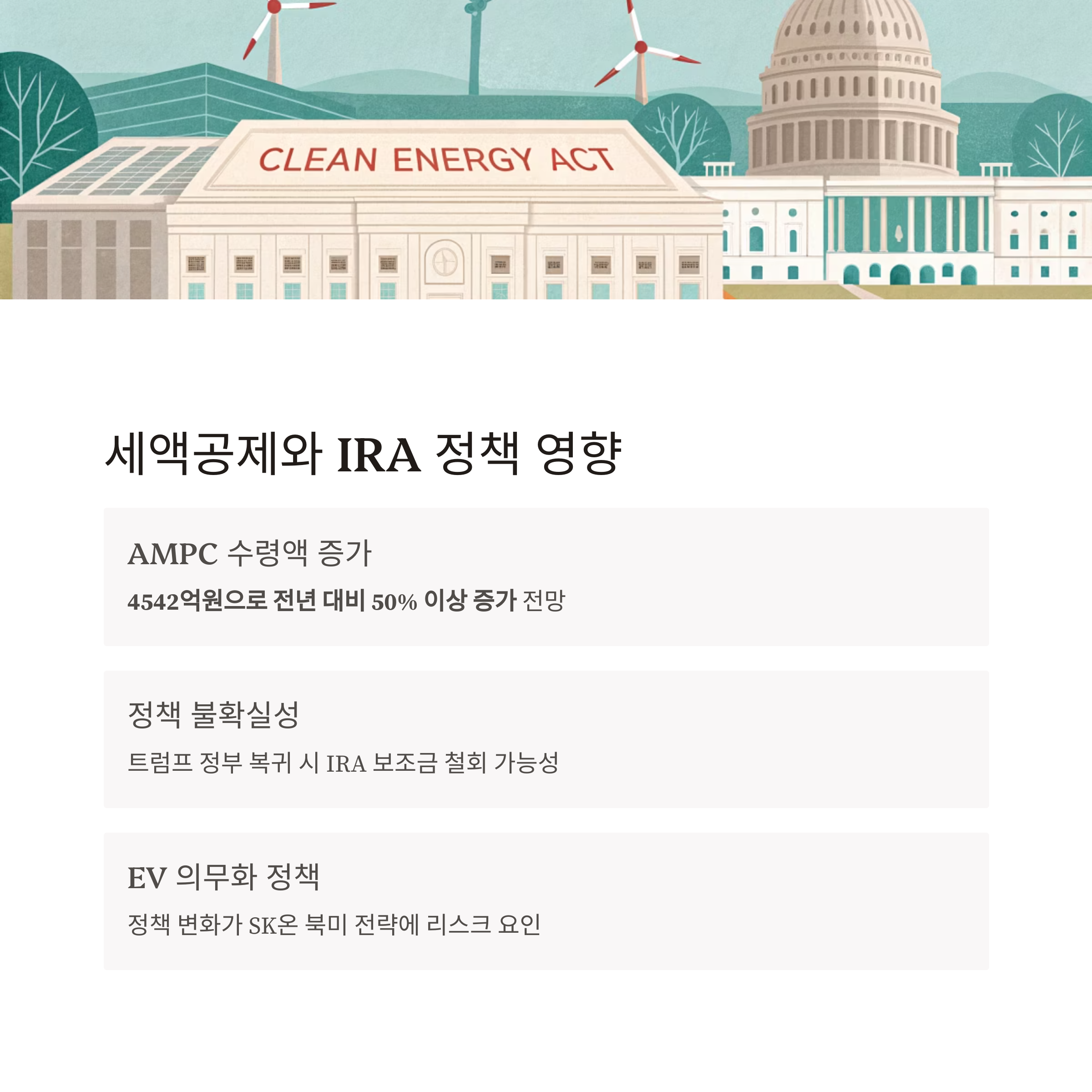 "IRA 보조금 철회 가능성, EV 의무화 정책 철회 등은 SK온의 북미 전략에 잠재적인 리스크가 될 수 있다"는 전문가 분석도 함께 주목해야 합니다.