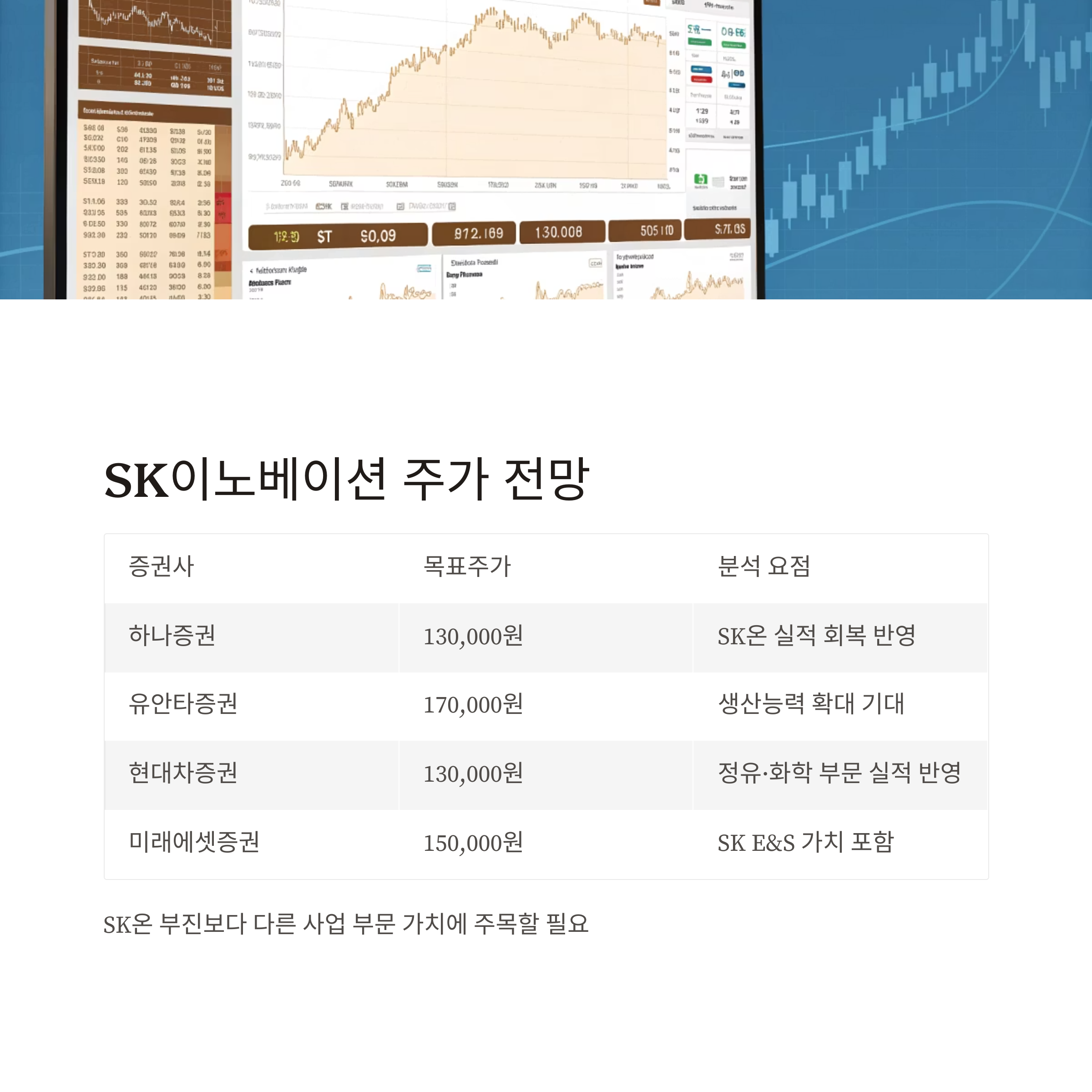 | 하나증권 | 130,000원 | SK온 실적 회복 반영 |
