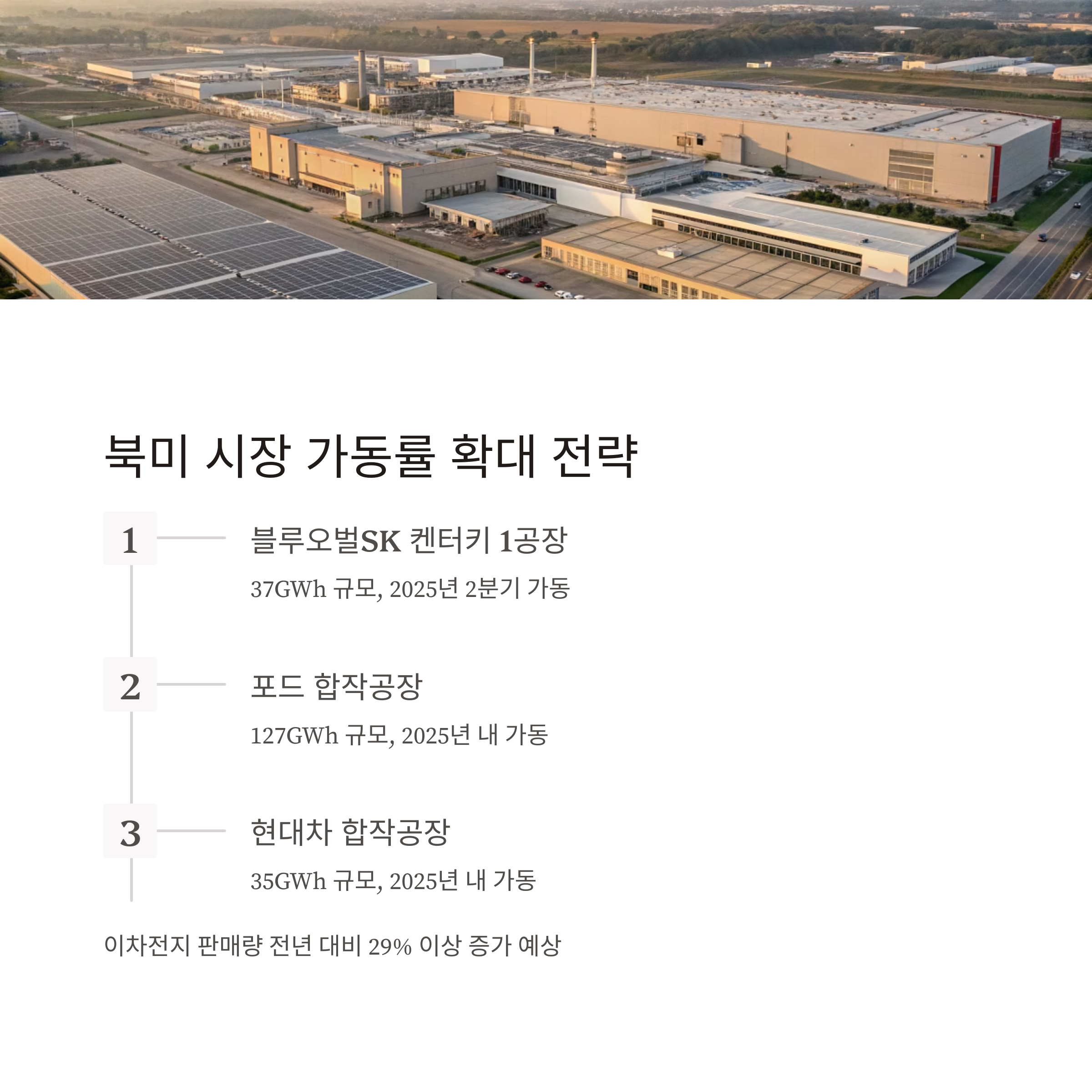 2025년은 SK온의 여러 합작 공장이 본격적으로 가동되며 생산능력이 단계적으로 확대되는 원년이 될 것으로 기대됩니다.