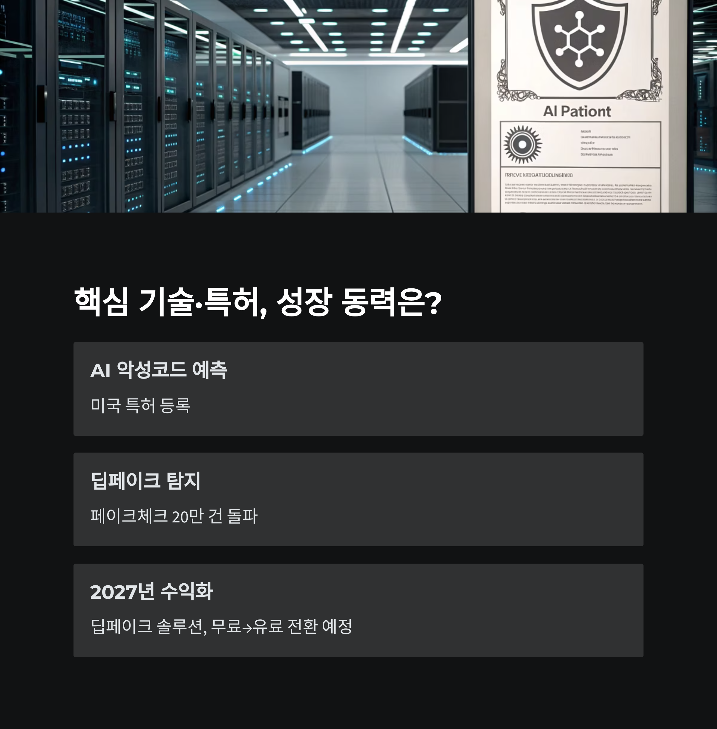 가장 눈에 띄는 기술력은 300억 개의 보안 데이터셋과 이를 기반으로 한 AI 학습 모델입니다.