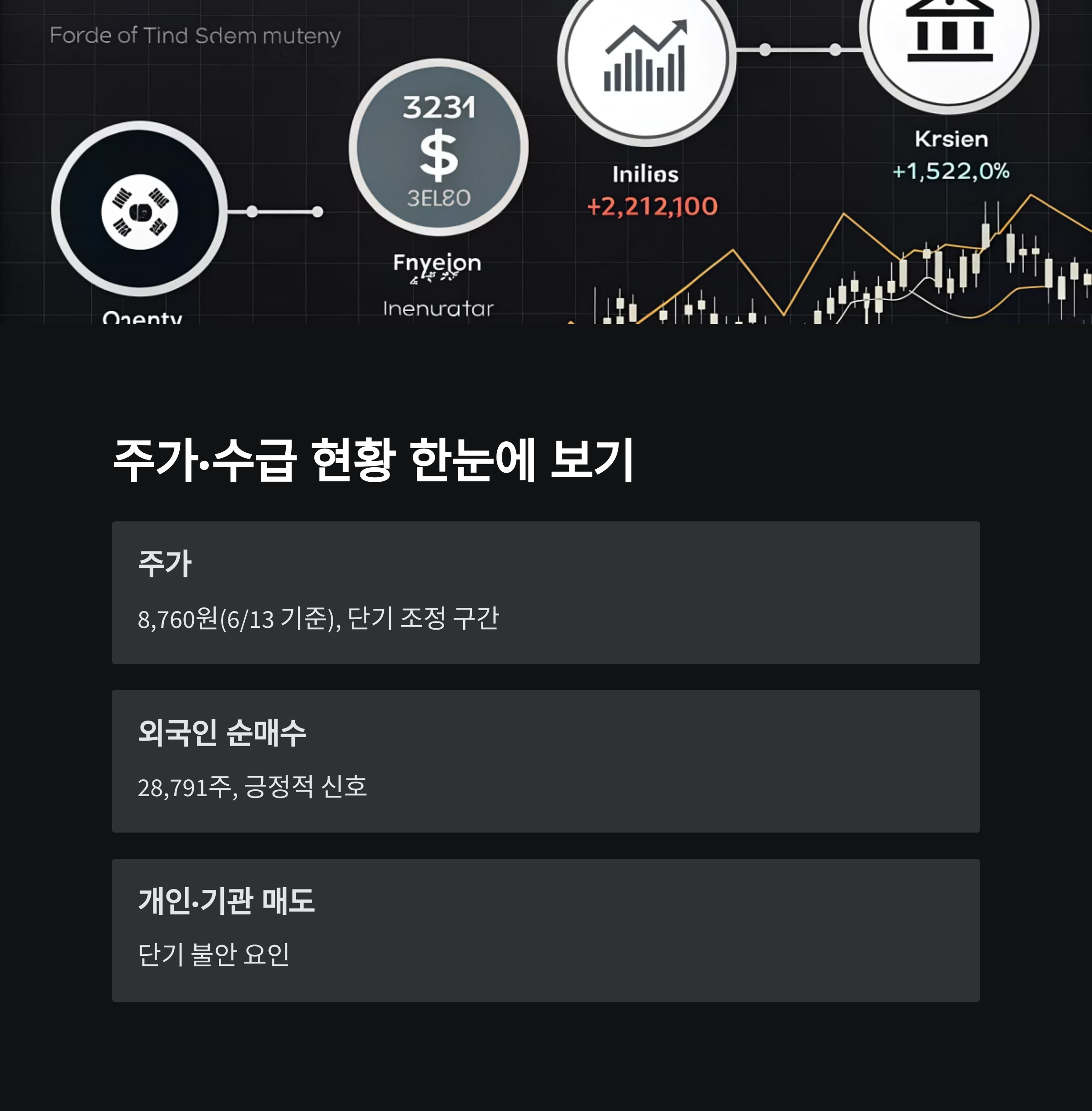 투자자 매매 동향에서는 외국인 투자자의 꾸준한 순매수가 긍정적 신호로 작용하고 있으며,