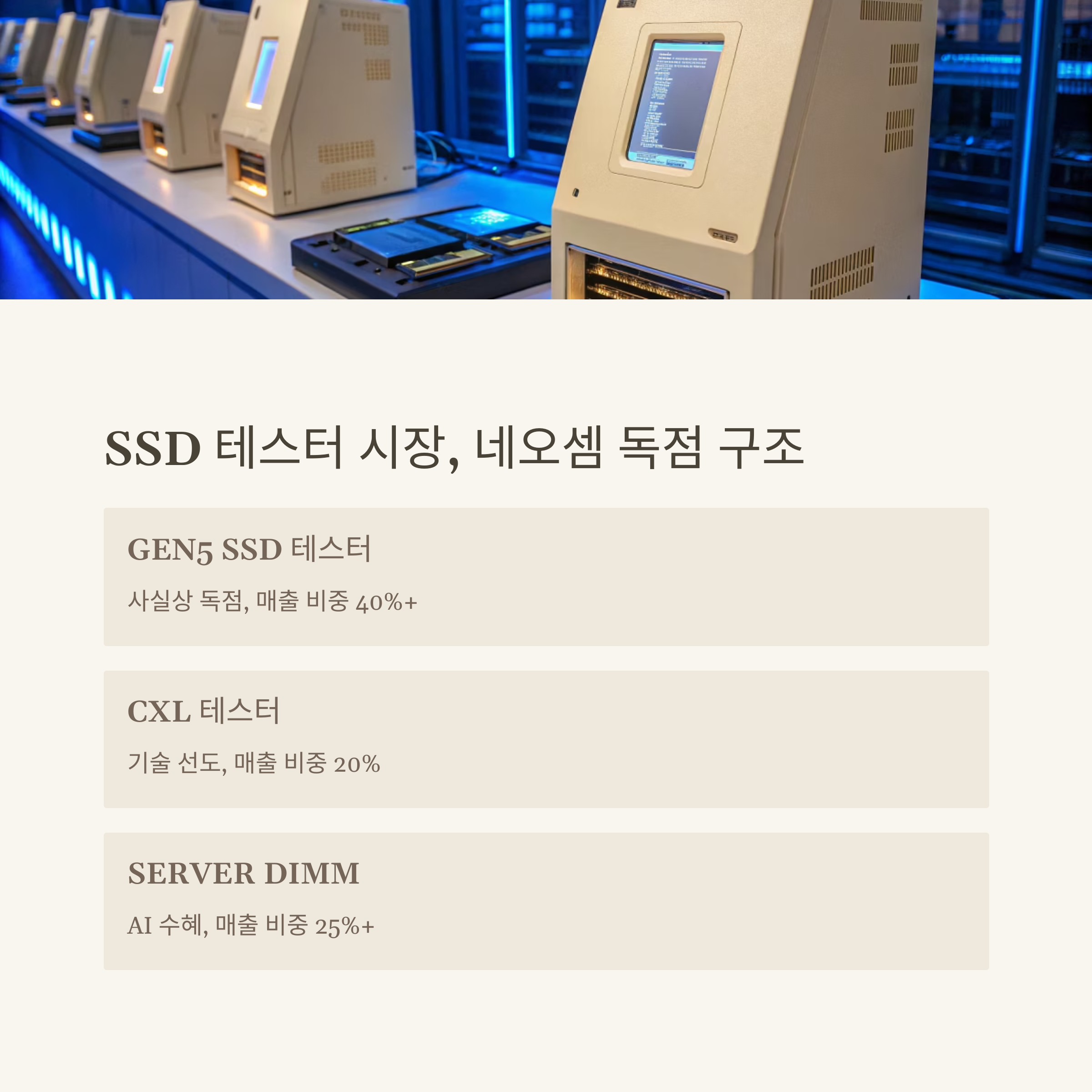 ADVANTEST의 철수로 인해 네오셈은 GEN5 SSD 테스터 시장에서 사실상 독점 지위를 확보하게 되었습니다.