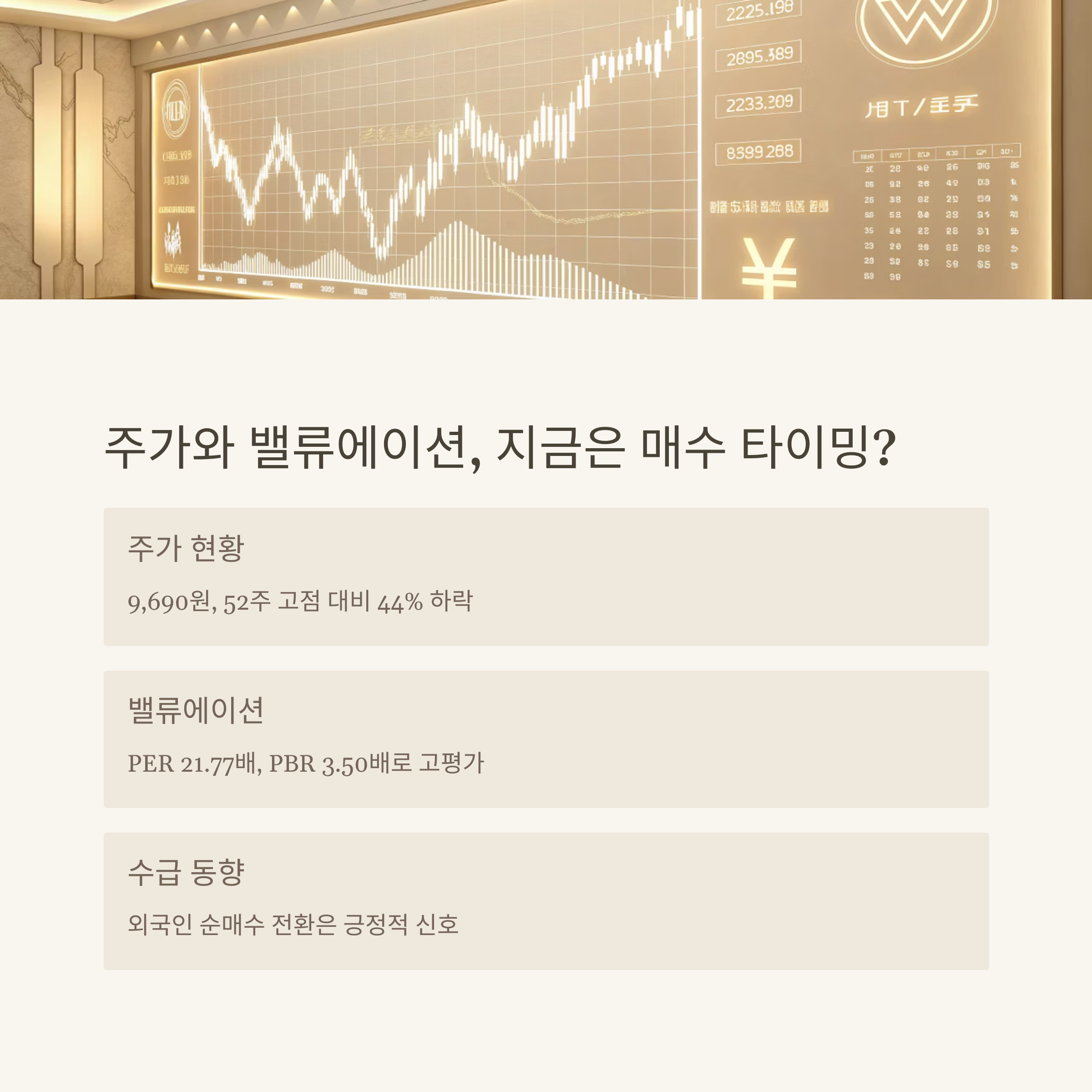 그러나 높은 밸류에이션과 외국인 매도세는 단기적인 주가 조정 리스크를 유발할 수 있습니다.