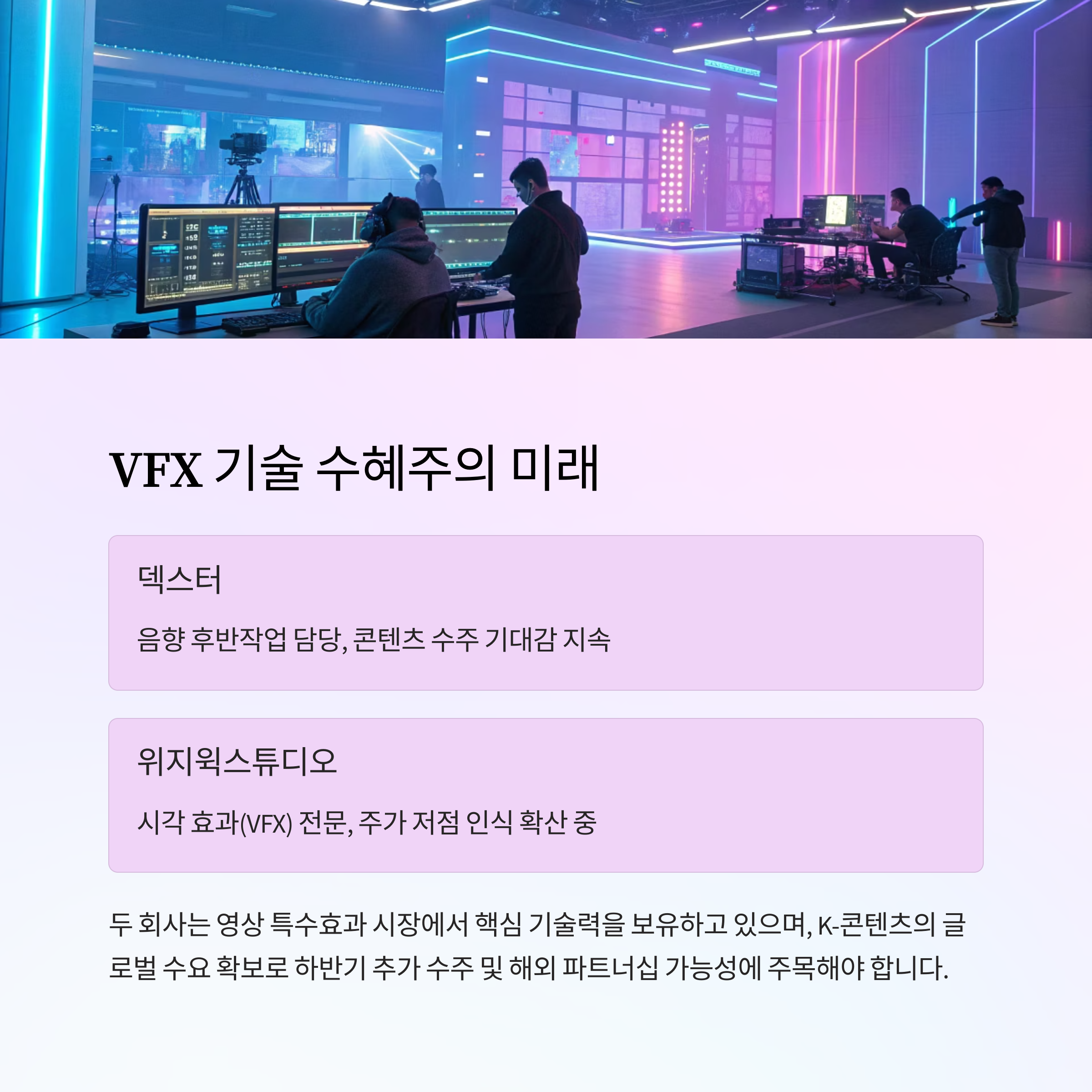 | 위지윅 | VFX 시각 효과 | 주가 저점 인식 확산 중 |