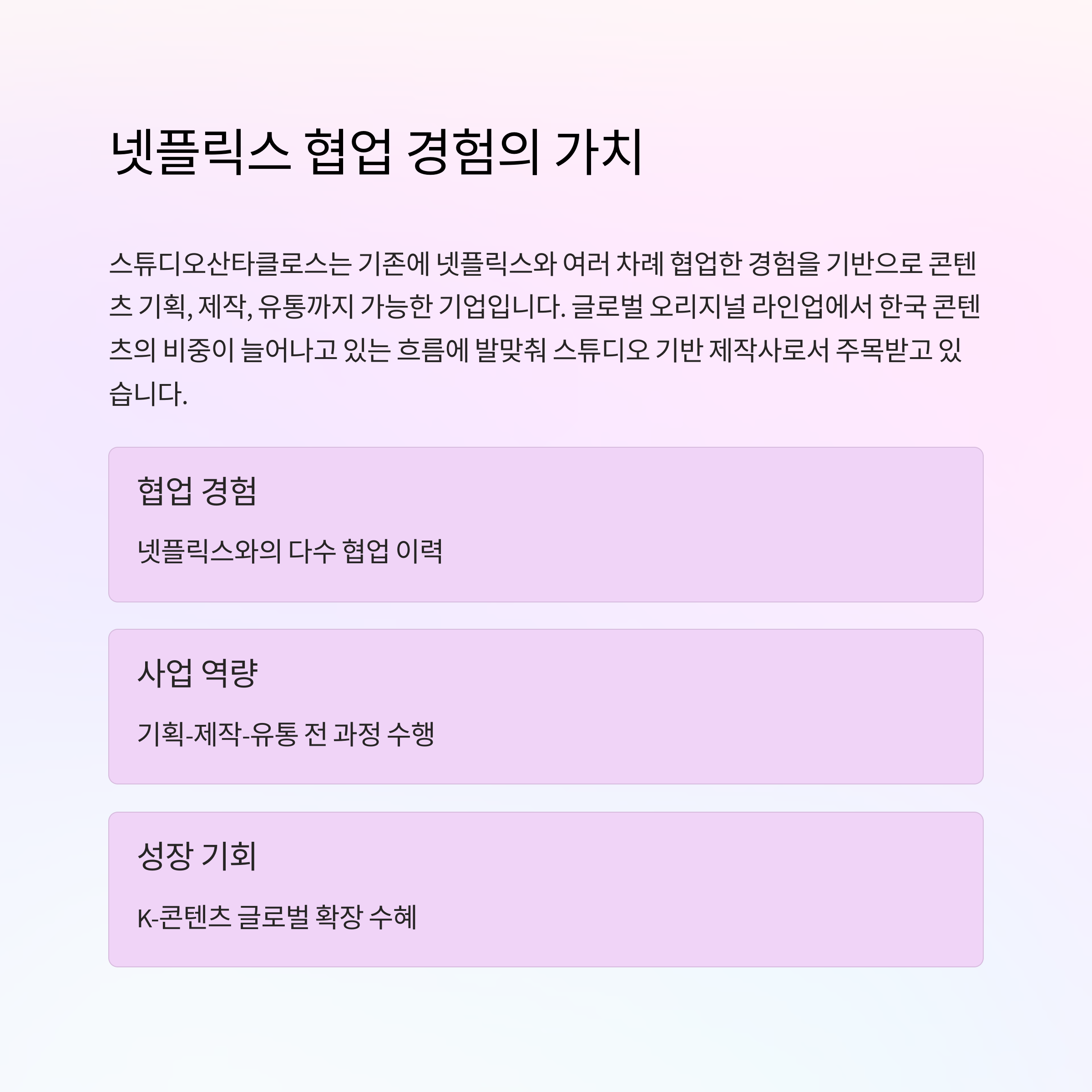 넷플릭스 협업 경험이 강점인 스튜디오산타클로스