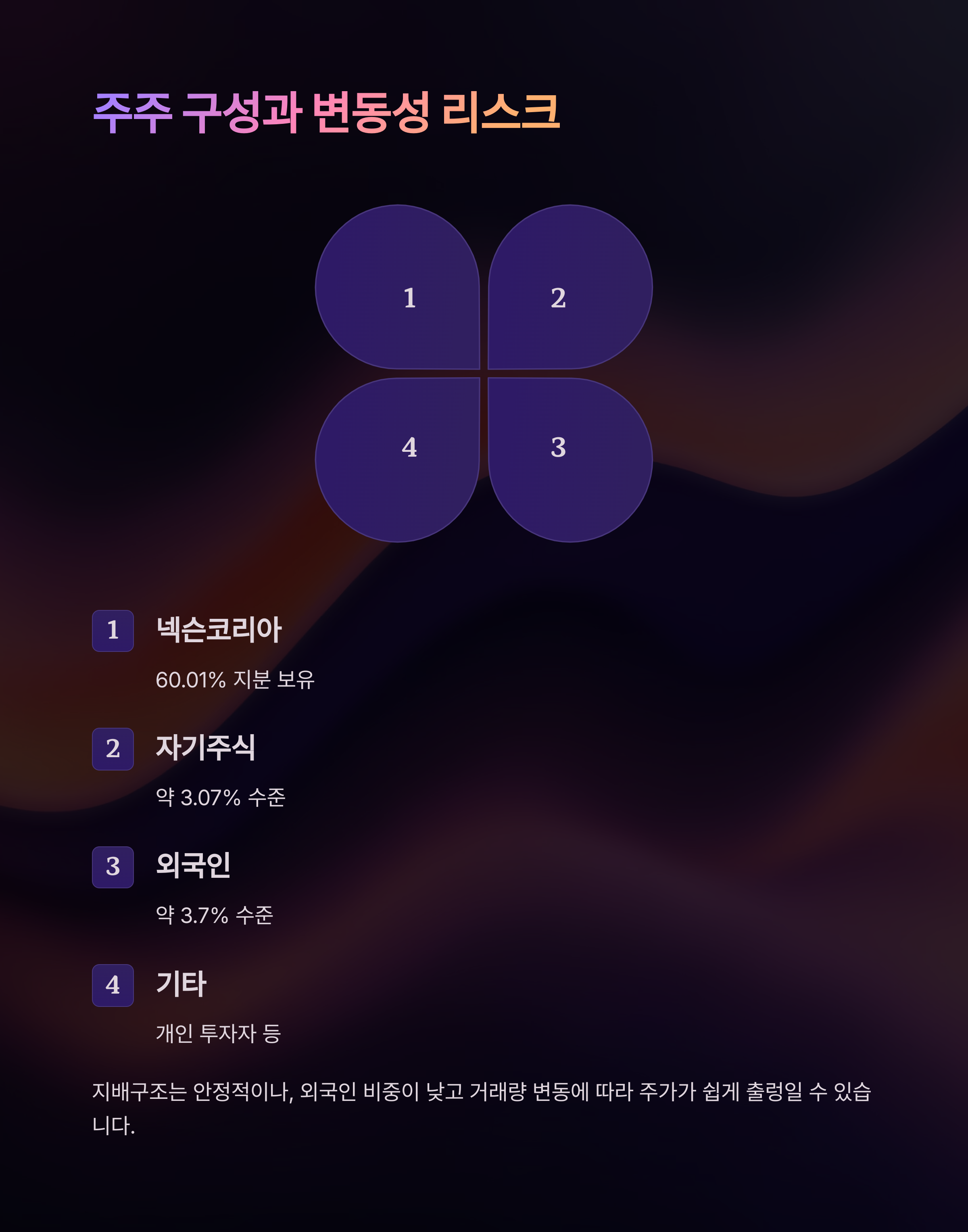 주주 구성 안정성 vs 외부 변동성 리스크
