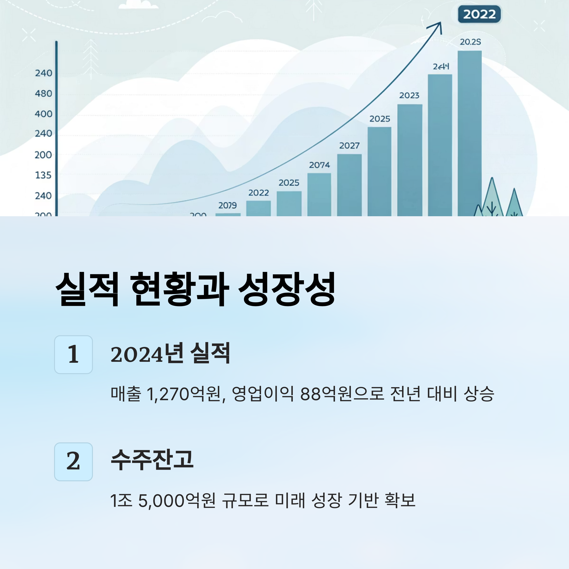 1,270억원, 영업이익은 88억원으로, 전년 대비 소폭 상승했습니다. 이는 핵심 매출처인 이차전지 부품 부문의 지속 성장에 따른 결과입니다.