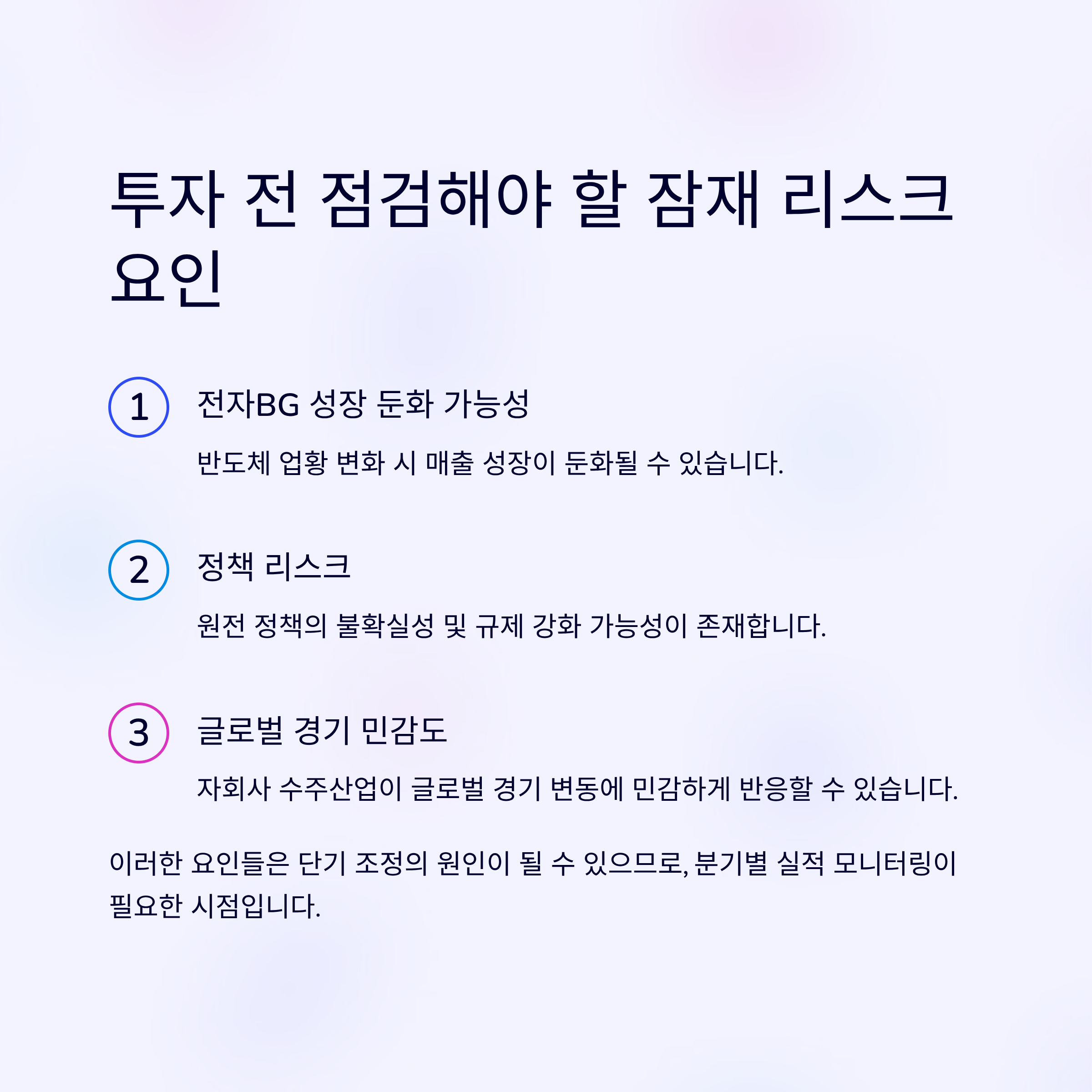 1. 전자BG 성장 둔화: 반도체 업황 변화 시 매출 성장 둔화 가능성