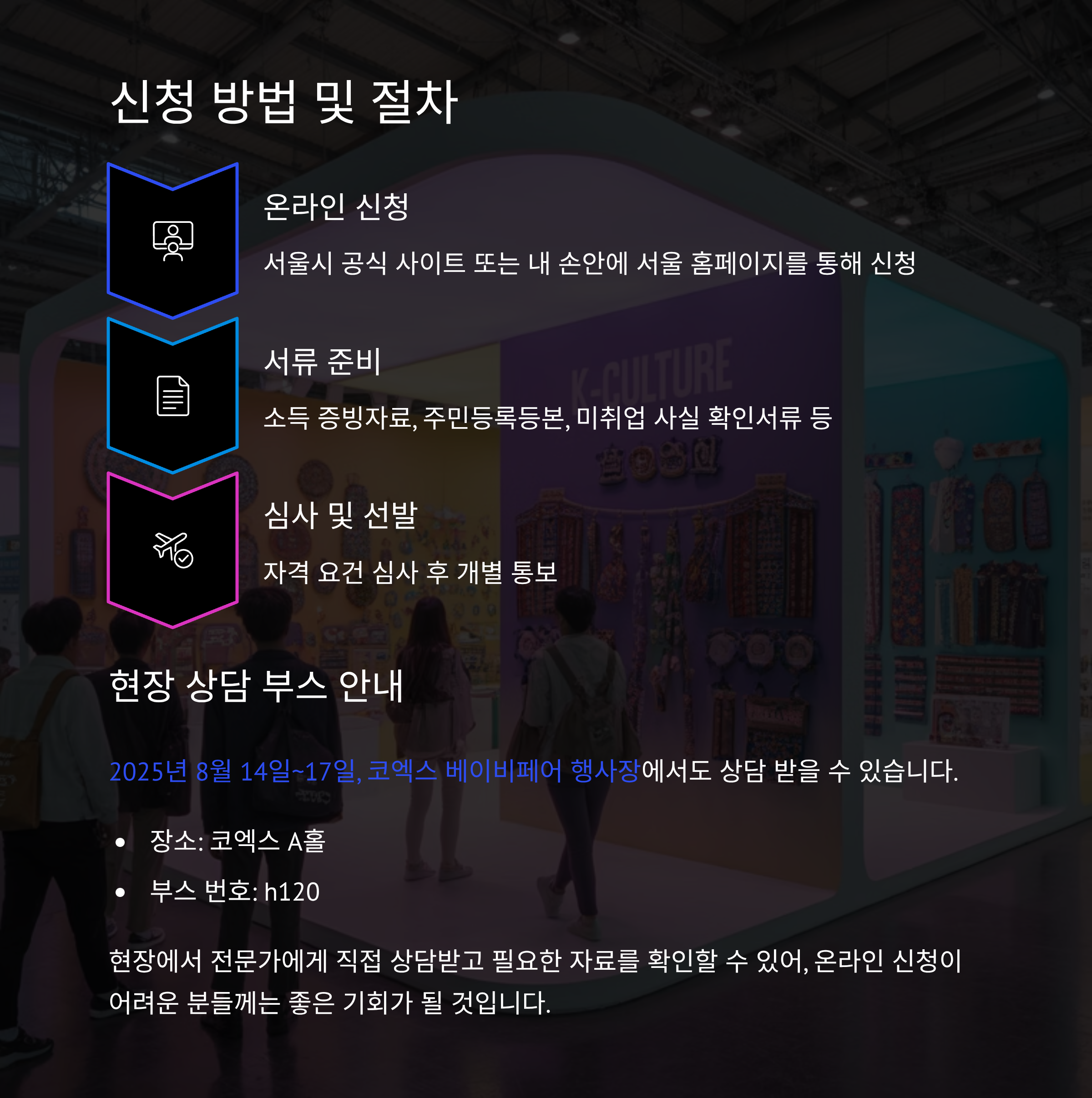 신청과 관련한 상세 안내는 2025년 8월 14일~17일, 코엑스 베이비페어 행사장에서도 받을 수 있습니다.
