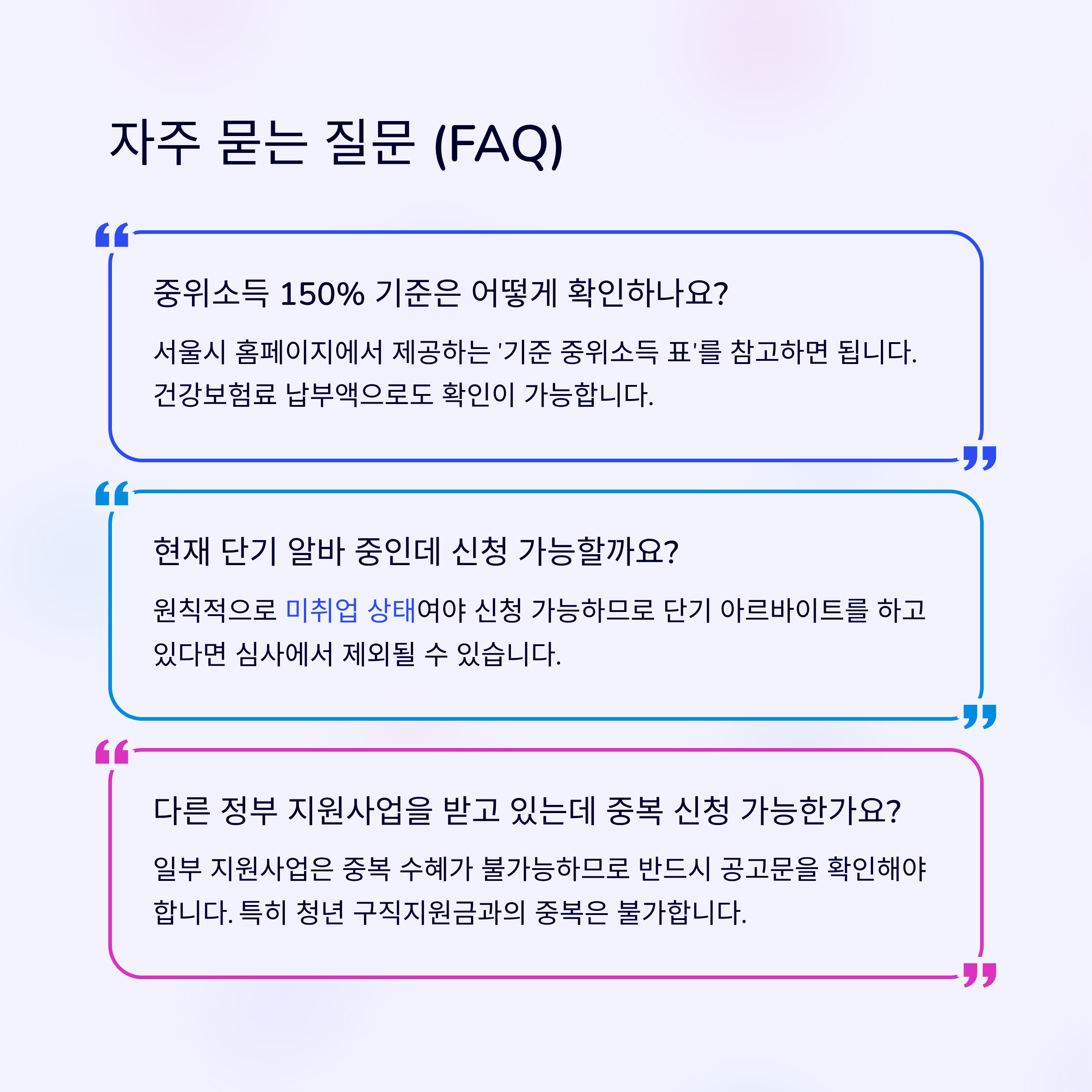 - 소득 기준: 가구 중위소득 150% 이하