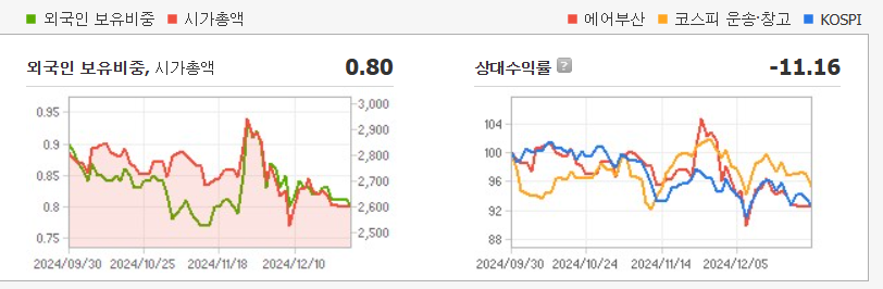시가 총액과 장중 거래량을 살펴봐야 단기 포트폴리오를 구성할 수 있습니다. 에어부산의 시가 총액은 2683억 원이며 장중 거래량은 51,831원 을 기록했습니다. 대주주의 정보는 중요하지 않을 수 있지만 장기적으로는 확인하는 것이 좋습니다.