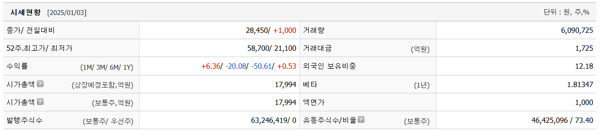 단기 포트폴리오를 구성할 시 시가 총액과 장중 거래량도 살펴봐야 합니다. 이수페타시스의 시가 총액은 1조7994억 원이며 장중 거래량은 6,090,725원 을 기록했습니다. 대주주의 정보는 크게 중요하지 않지만 장기적인 관점에서는 확인해보는 것이 좋겠습니다.