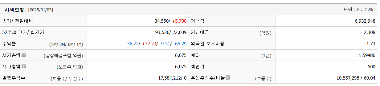 단기 포트폴리오를 구성한다면, 시가 총액과 장중 거래량도 살펴봐야 합니다. DS단석의 시가 총액은 6075억 원이며 장중 거래량은 6,932,948원 을 기록했습니다. 대주주의 정보는 크게 중요하지 않을 수도 있으나 장기적으로는 확인해보는 것이 좋겠습니다.