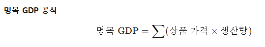 명목 GDP는 해당 연도의 상품과 서비스 가격 × 생산량을 합산하여 계산합니다.