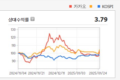단기 포트폴리오를 구성할 때는 시가 총액과 장중 거래량도 체크해야 합니다. 카카오의 시가 총액은 18조5451억 원이며 장중 거래량은 6,846,406원 을 기록했습니다. 대주주의 정보는 크게 중요하지 않을 수도 있지만 장기적인 관점에서는 확인하는 것이 좋겠습니다.